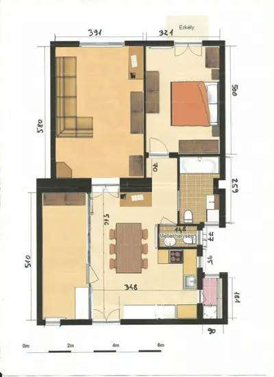 A konyhaterület praktikus elrendezése minden igényt kielégít, ahol a főzés élmény lesz. A hálószobák külön bejáratúak.
