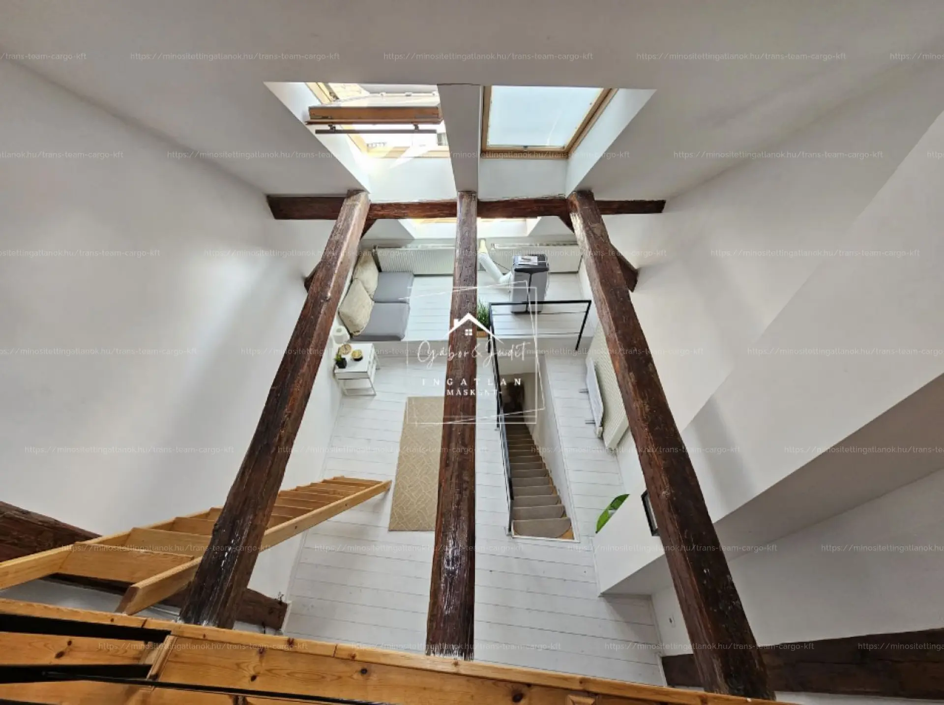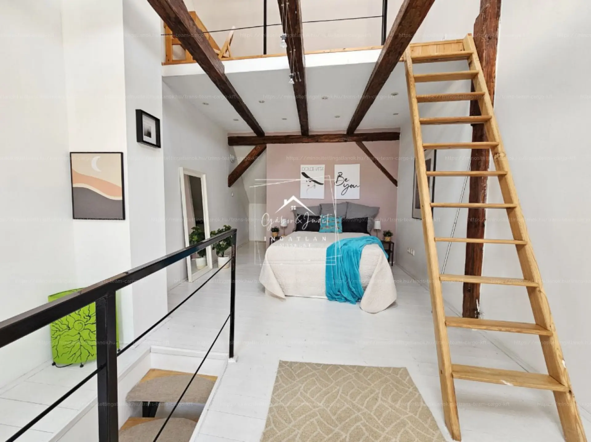 A felső szinten a hálószoba, gardrobe és egy galéria van. A történelmi jelentőségű pince rendszerben még egy 5nm-es pince is tartozik a lakáshoz.