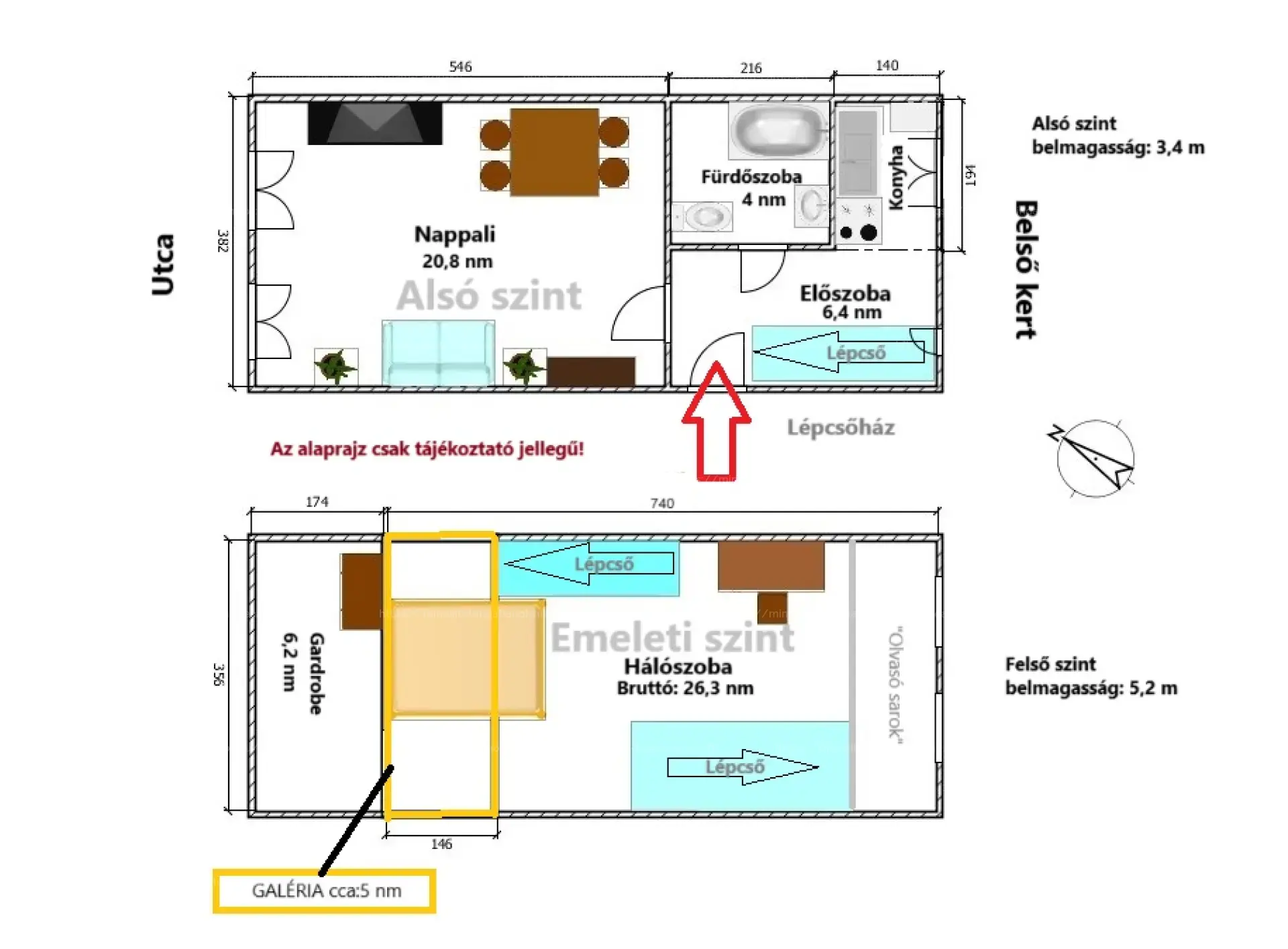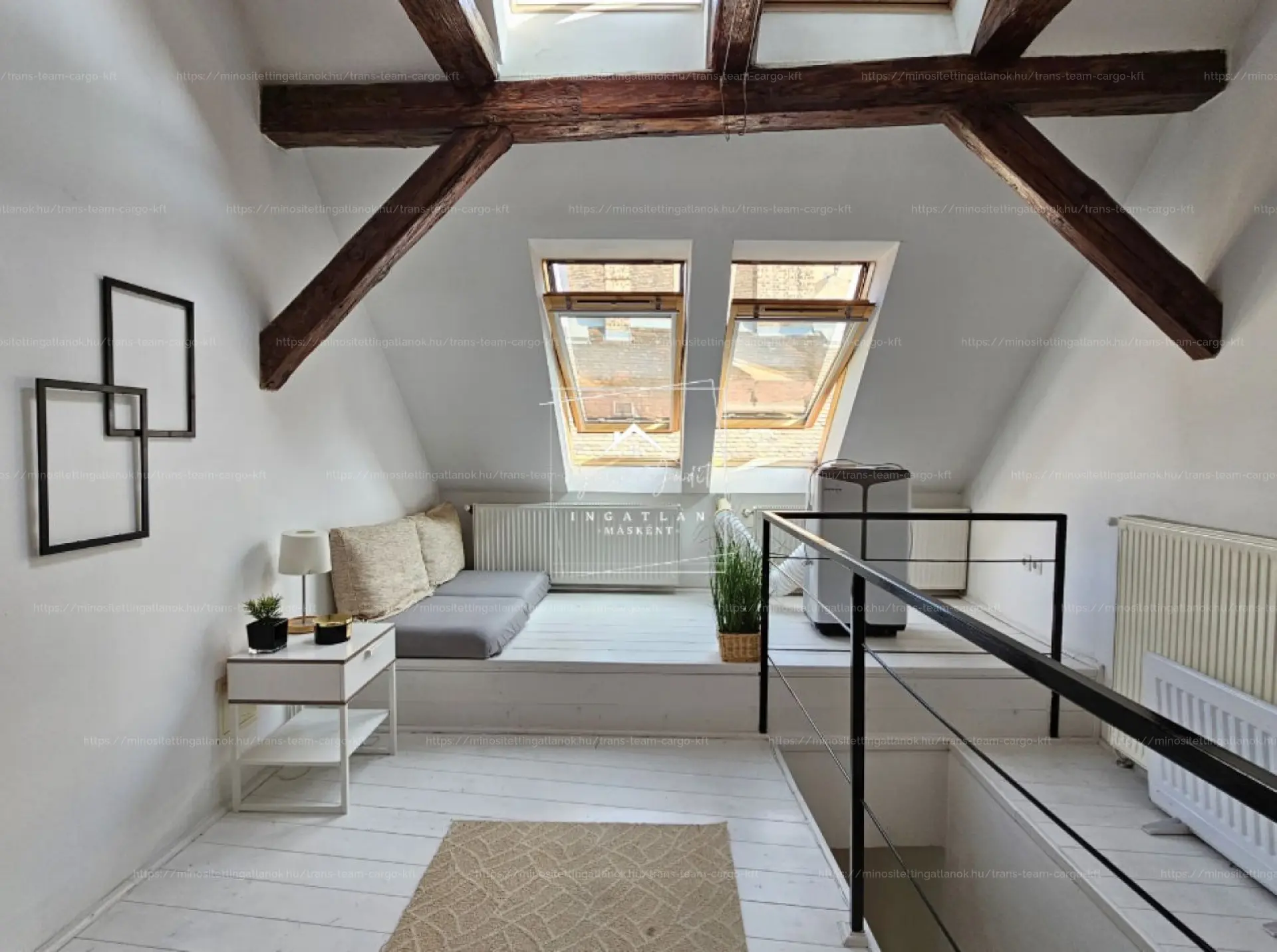 A felső szintet (tetőtér) 12 éve nyitották egybe az alsó szinttel, ekkor került felújításra, szigetelték és új nyílászárókat is kapott. Bár tetőtér, de a belmagassága eléri az 5m-t is.