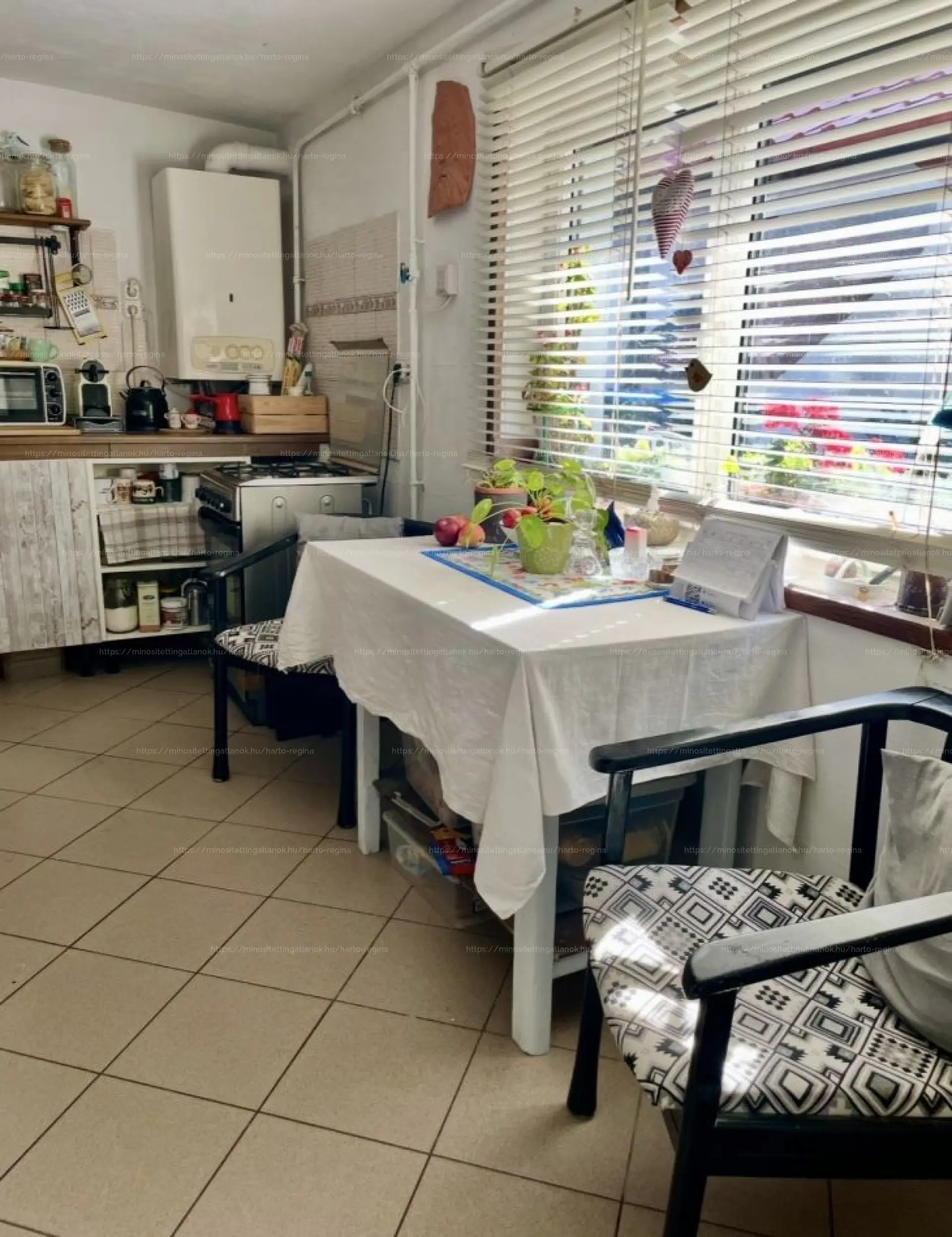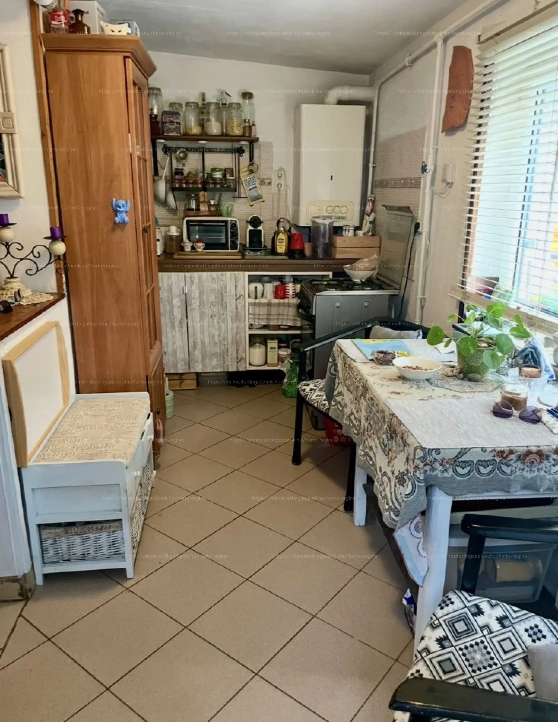 Konyhában új, műanyag nyílászáró, a többi helyiségben régi fa ablakok
