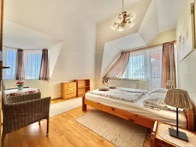 Az emeleten egy tágas apartman található, melynek alapterülete 120 nm, illetve egy lépcsőn keresztül jutunk fel a 4-ik szintre, egy körpanorámás, 14 nm-es panorámaszobába.