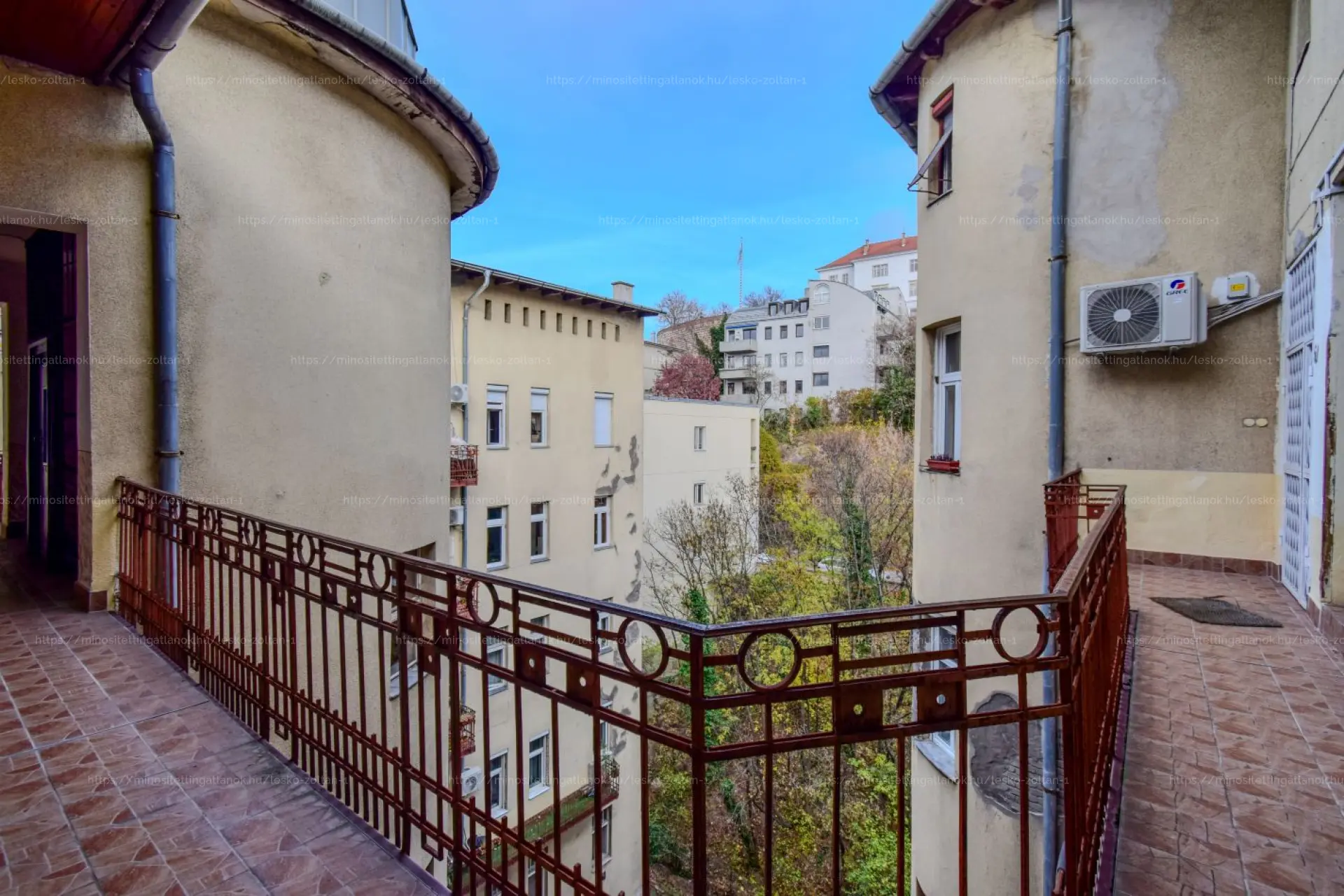 - erkély, ahonnan a Vérmező zöld fáira nyílik kilátás