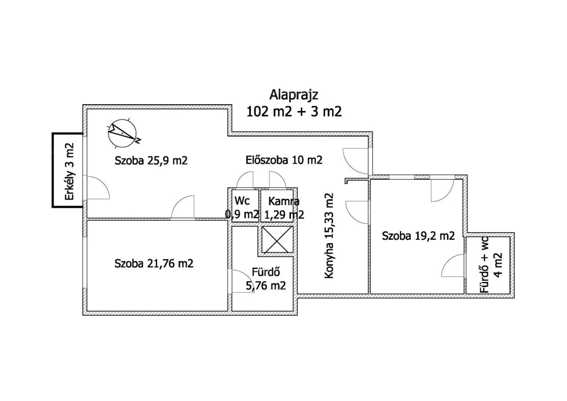 Az alaprajz alapján a lakás a következő elrendezést mutatja: