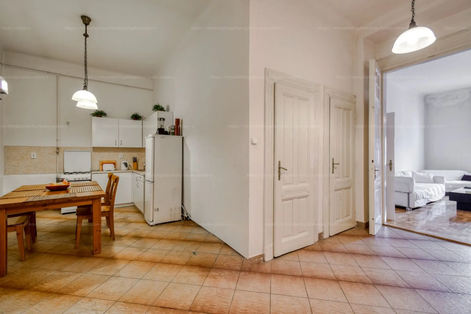 A lakás átlag állapotban van, de a jó szerkezeti adottságai miatt modernizálható vagy átalakítható. A jelenlegi elrendezés két fürdőszobát, három nagyméretű szobát, konyhát, előszobát, kamrát és külön WC-t foglal magában – minden teret jól kihasználva, élhető környezetet eredményezve.