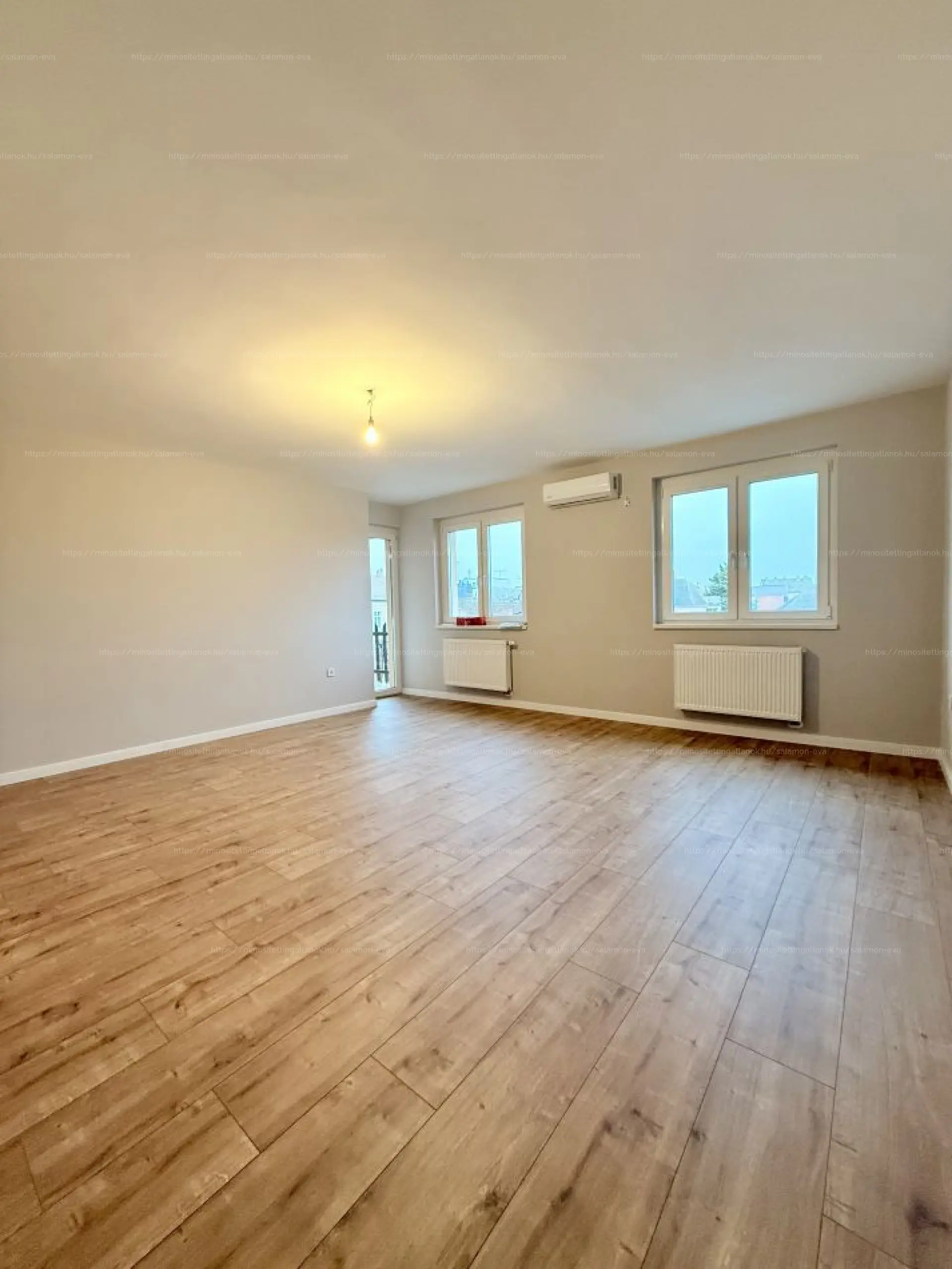 A nappaliból lodzsára léphetünk ki, ahonnan lenyűgöző városi panoráma tárul elénk: a Dóm tornyai, a zsinagóga és a kakasos templom látványa teszi igazán különlegessé ezt az ingatlant. A nappali mérete és ablakai lehetővé teszik egy további hálószoba leválasztását, így a lakás akár nappali + két hálószobássá is alakítható.