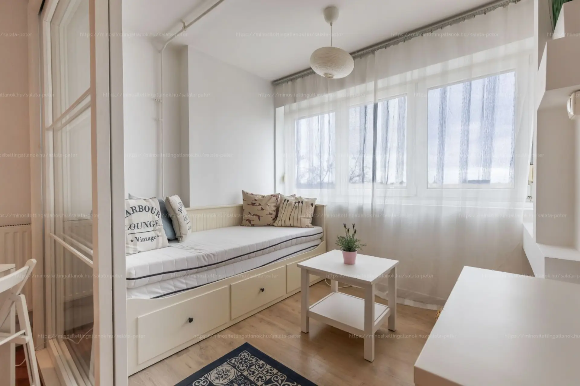 A képen látható bútorok és berendezési tárgyak igény esetén megvásárolhatók.