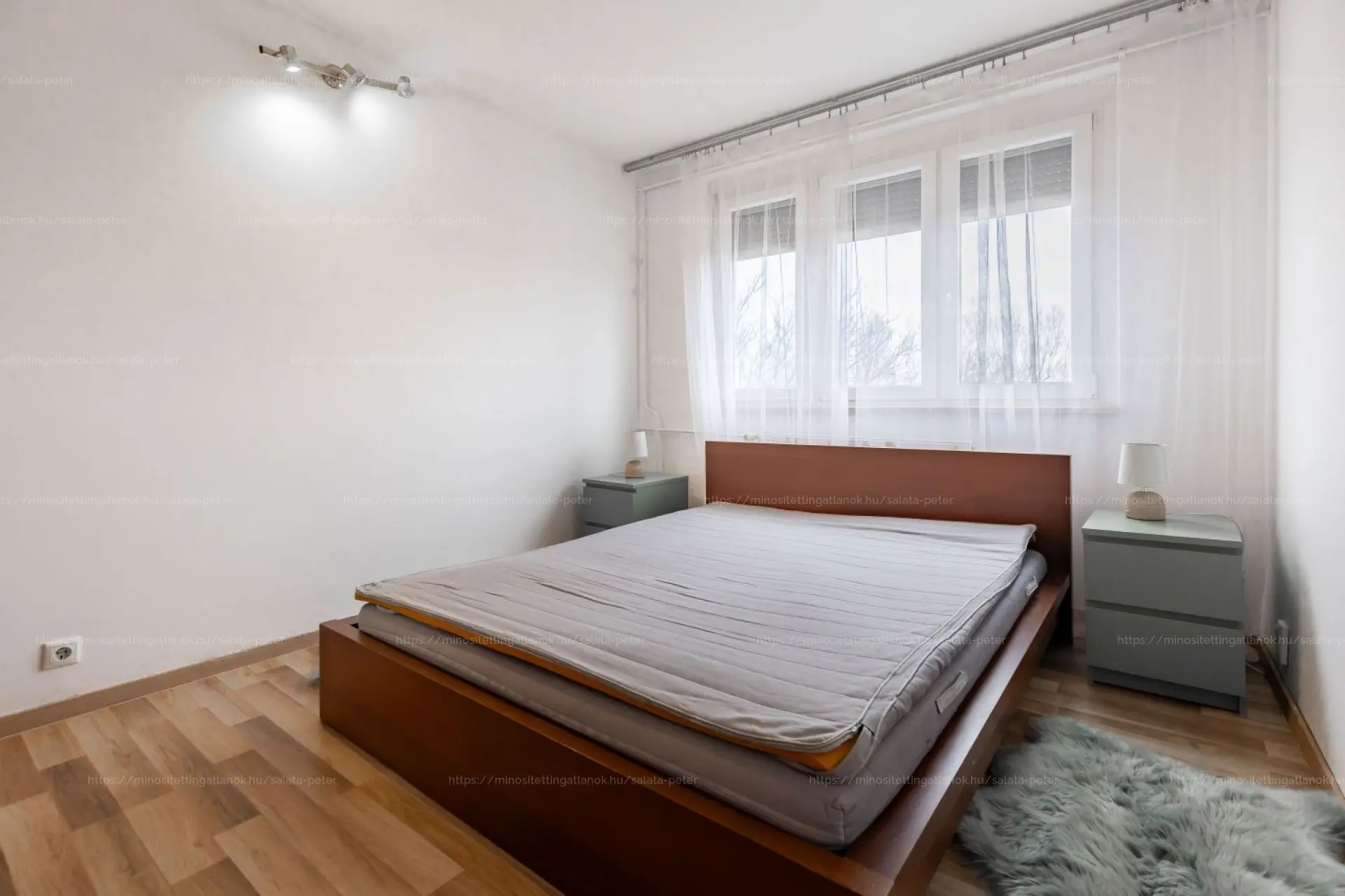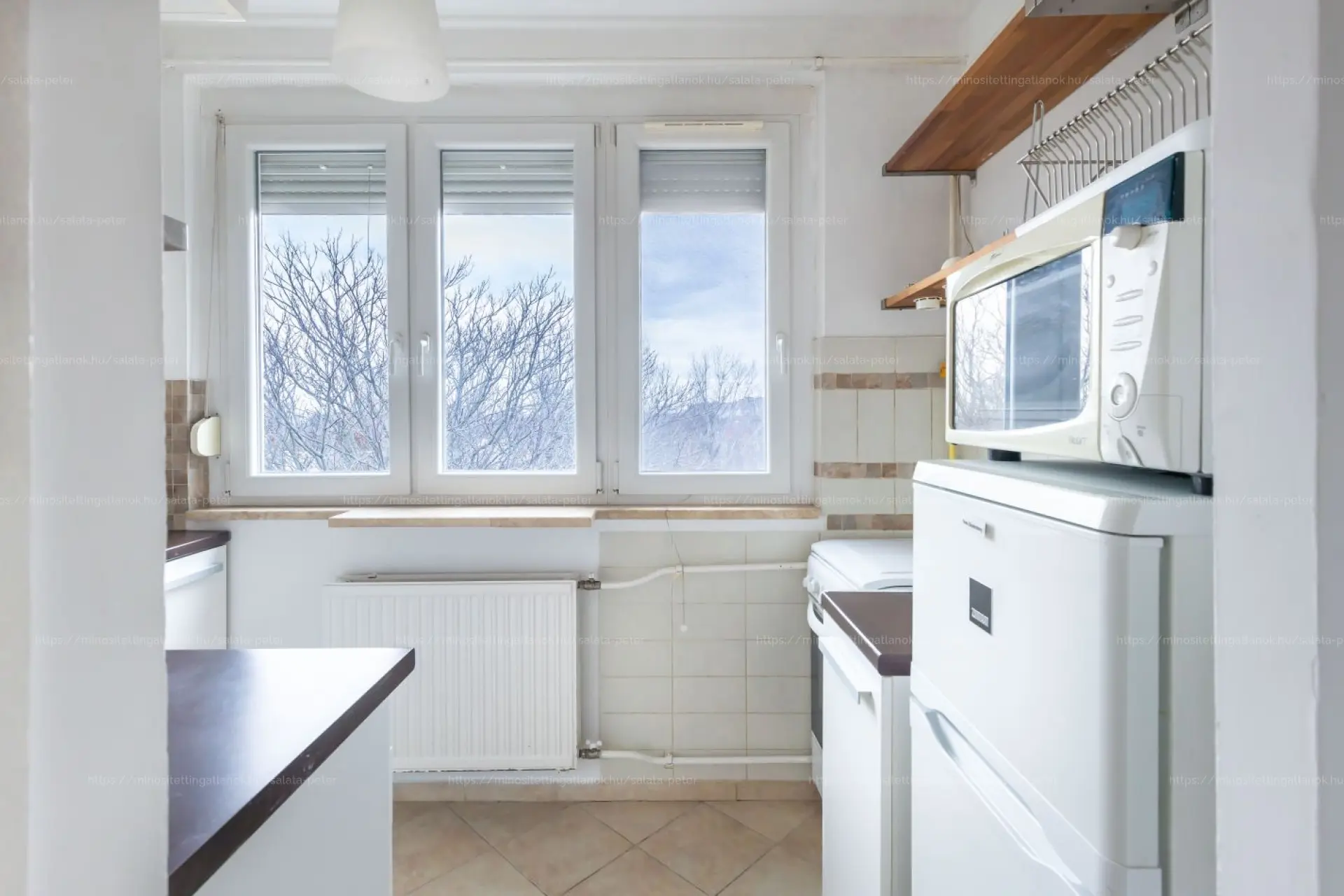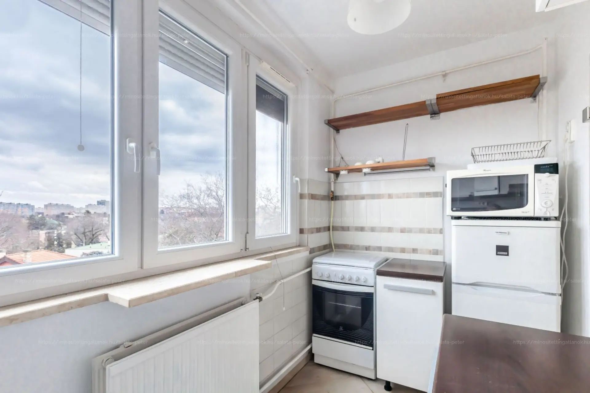 Elosztása: nappali, külön nyíló hálószoba, kis félszoba, külön álló konyha, külön álló mellékhelyiség, kádas fürdőszoba.