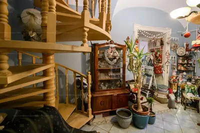 A két ingatlan belső lépcsővel összekötött, de mivel eredetileg is 2 hrsz-on volt, így természetesen külön-külön bejáraton is megközelíthetőek.