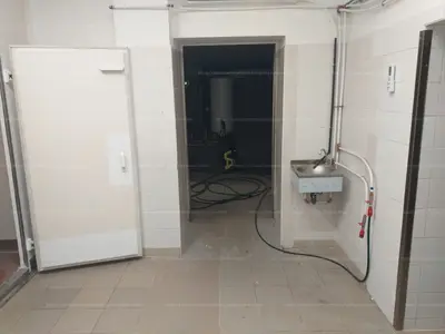Korábban zöldséges, majd kisbolt, később húsbolt üzemelt az épületben, az utóbbinak megfelelően a helyiségek mosható felületekkel rendelkeznek.
