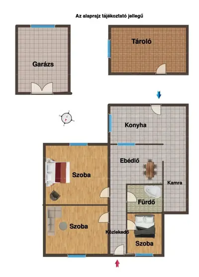 Az ingatlan nettó 71 m² alapterületű, melyhez tartozik egy 17 m²-es garázs, valamint egy 20 m²-es különálló tároló is.