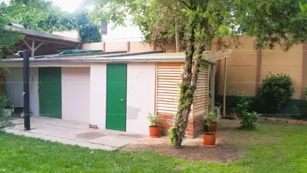 Eladó Csepel egyik legzöldebb, nyugodt kertvárosi környékén egy 448 m²-es telken álló, déli tájolású, 2 + ½ szobás önálló családi ház felújításra vár, amely oldalfalával csatlakozik a szomszédos épülethez.