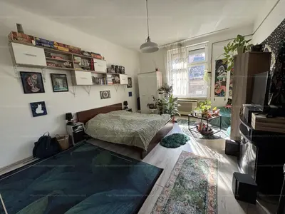 A Városligettől pár perc sétára eladó egy 74 m²-es, jó állapotú, magas emeleti lakás, amelyet két önálló lakrészre alakítottak (körülbelül 35 és 40 m²)