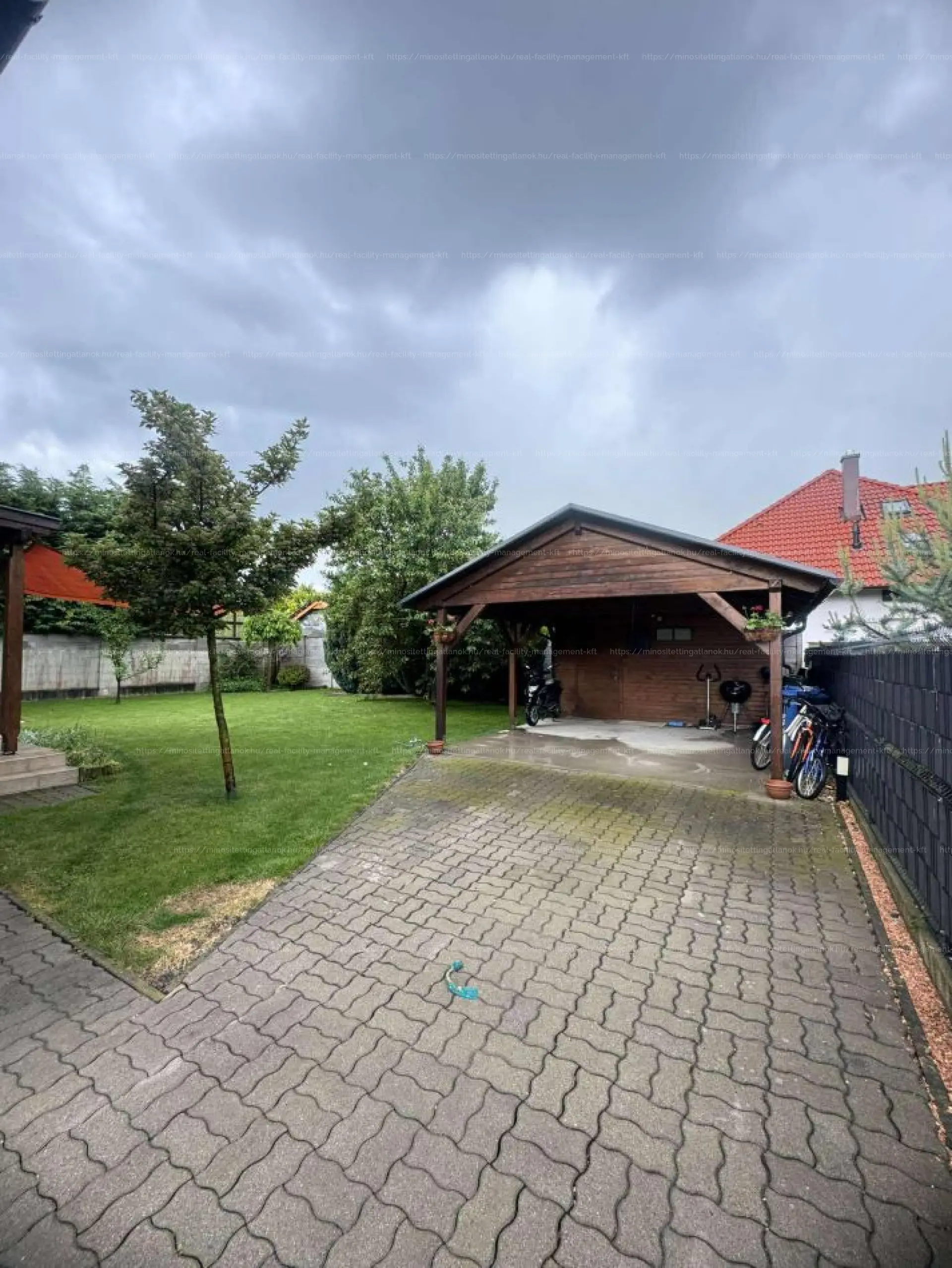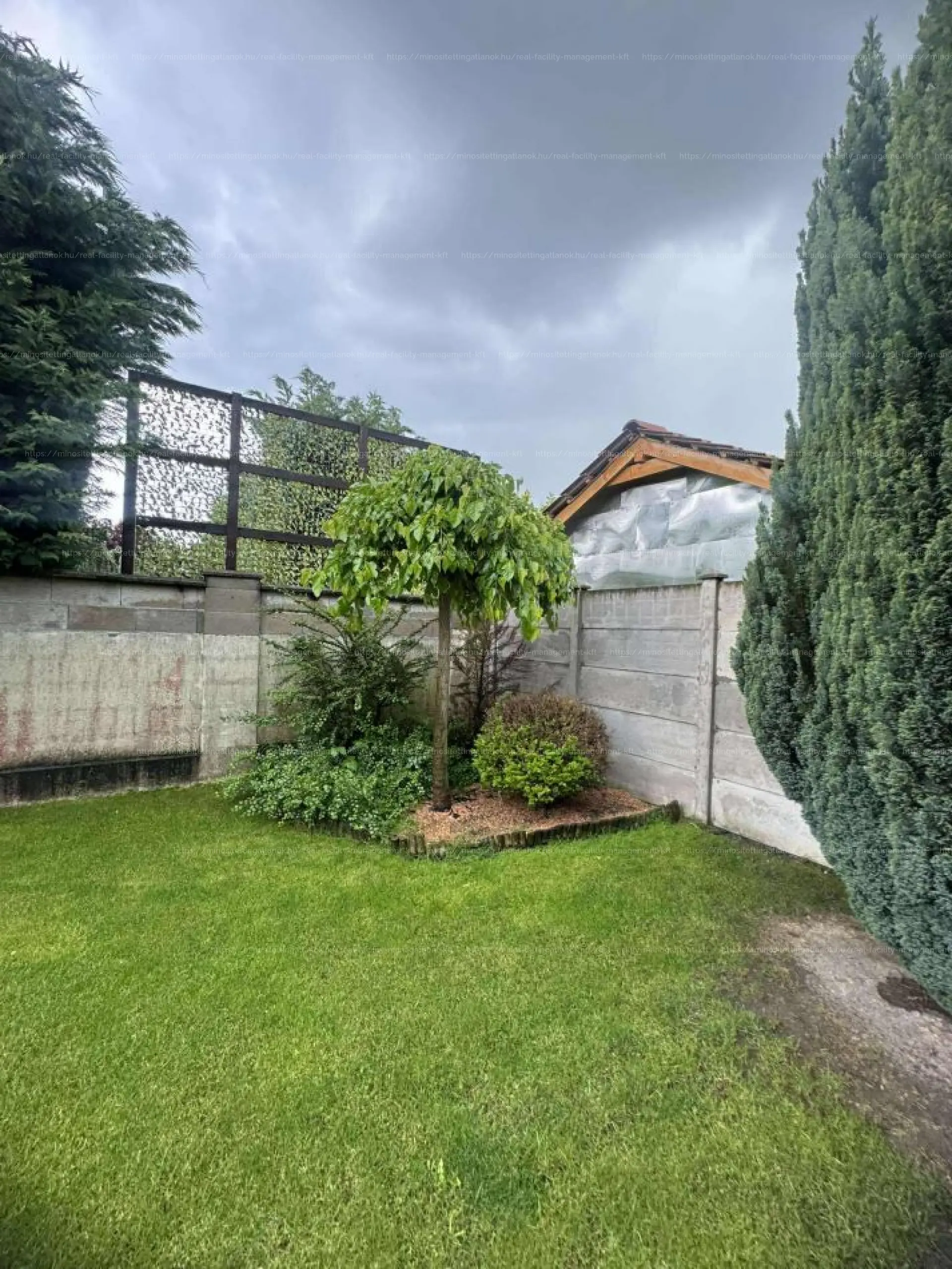Az ingatlan egy 720 m2-es telken került kialakításra melyen két családiház került felépítésre . A „ nyeles „ telken lévő hátsó ingatlan ,mely eladó sorba került 430 m2-es saját kerttel rendelkezik, mely körbekerített, gondozott , növényekkel körbeültetett . Rajta egy kb 30 m2-es fa tároló , 20 m2-es fedett kiülő résszel, mely kiválóan alkalmas akár több fős társaság fogadására is !