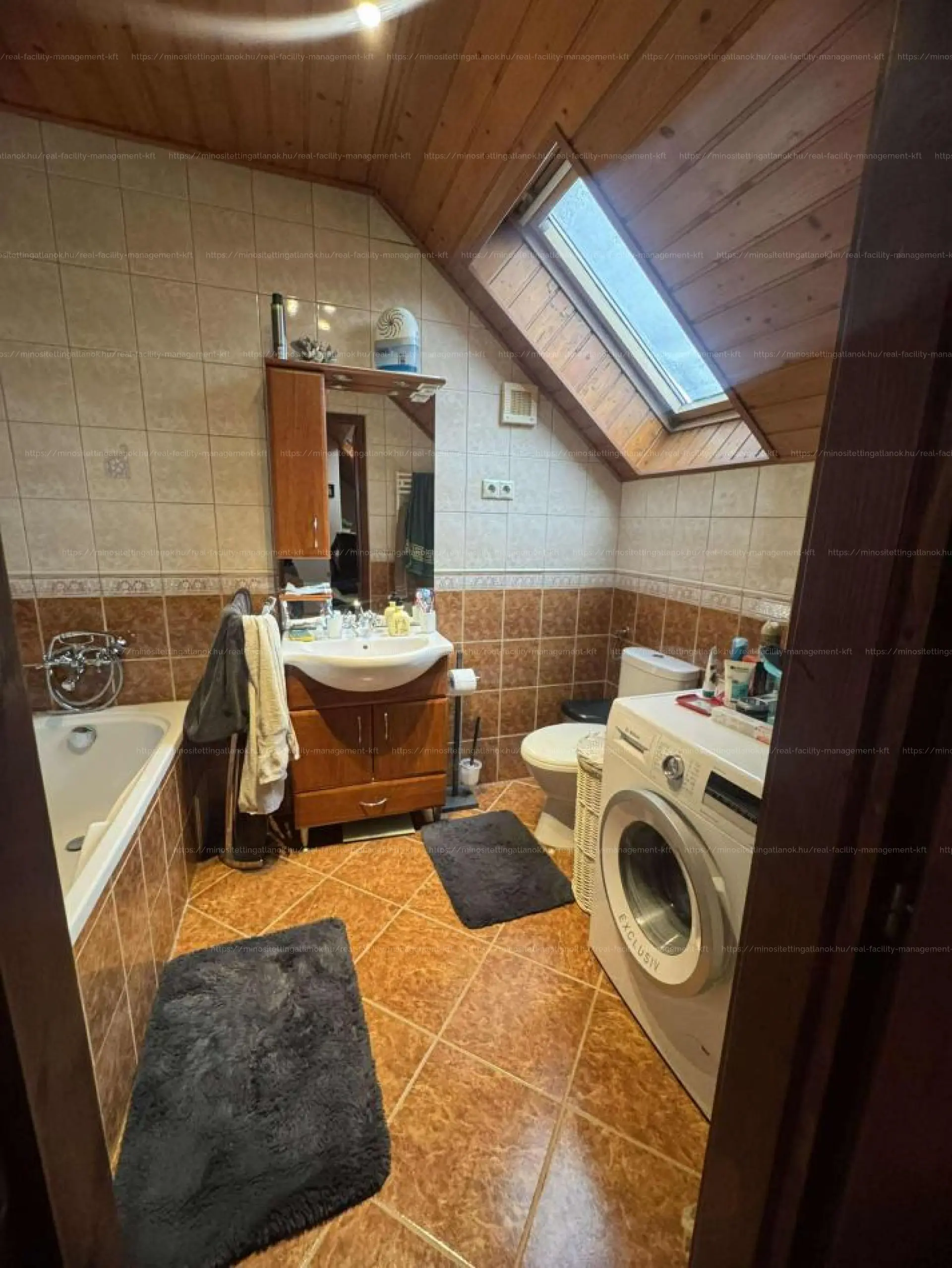 A felső szinten 3 hálószoba ,v bléá fürdőhelyiség wc-vel, és fogadótér !