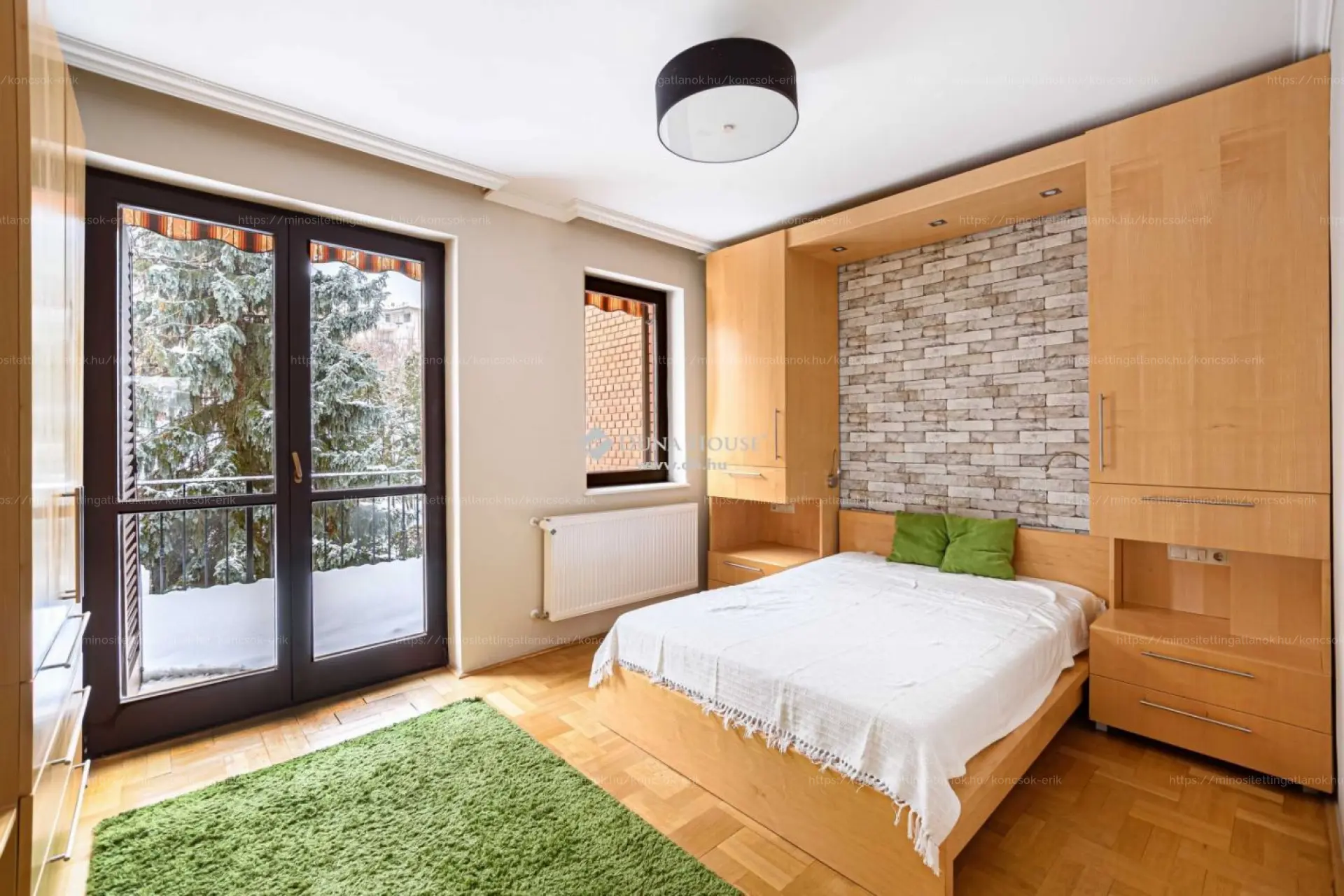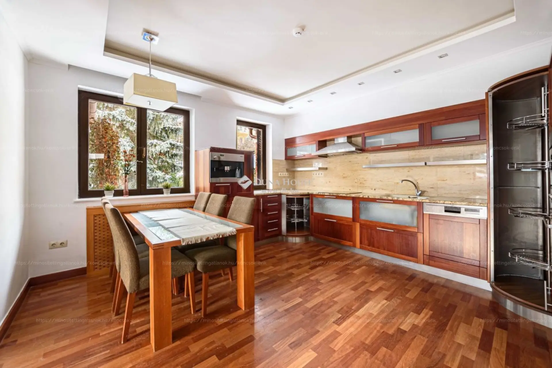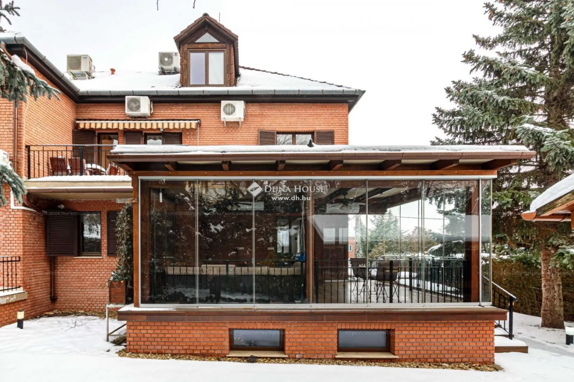 Budapest, 11.kerületében Sasadon , csendes, zöld utcában, a Beregszász úton eladó nettó 340 m2 lakóterülettel rendelkező ikerház kiváló elosztással, napsütéses terekkel, nagy,-és kis méretű különböző tájolású teraszokkal, hangulatos nyári konyhával, fenyőfák ölelésében.