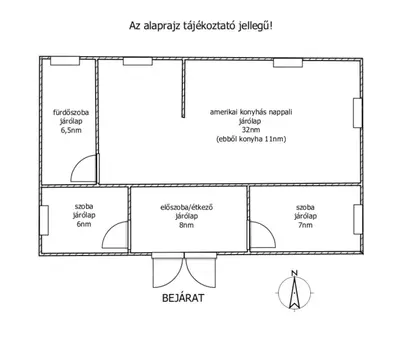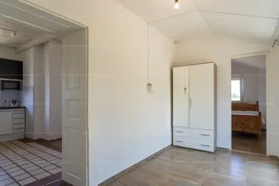 A tanya erdővel-mezővel körülölelve, a műúttól kb 300m távolságra fekszik. Esőben is jól járható úton lehet megközelíteni. Van benne 1 felszerelt, amerikai konyhás nappali, 2 szoba, fürdőszoba WC-vel, előtér (étkező) és egy új építésű, különálló tároló. A hálószobák kényelmes méretűek, a házon körben ablakok vannak, gyönyörű kilátást biztosítva a környező kertre, mezőre és erdőkre. Belmagassága 2,8m. A nappalit a fűtést ellátó fatüzelésű kályha teszi intimmé, hangulatossá. A fürdőszoba zuhanyzós, WC-vel ellátott, van helye a mosógépnek is. A melegvízet 80L-es Perla villanybojler biztosítja. A konyha igényesen kialakított, a Hollandiából származó konyhabútor a kiváló minőségű műszaki cikkekkel -Whirlpool mikrohullámú sütő, Siemens gáztűzhely elektromos sütővel, 8 terítékes Siemens mosogatógép, Siemens hűtő és mélyhűtő- a vételár részét képezi. A szennyvízet az átfolyós rendszerű emésztőbe vezetik le.
