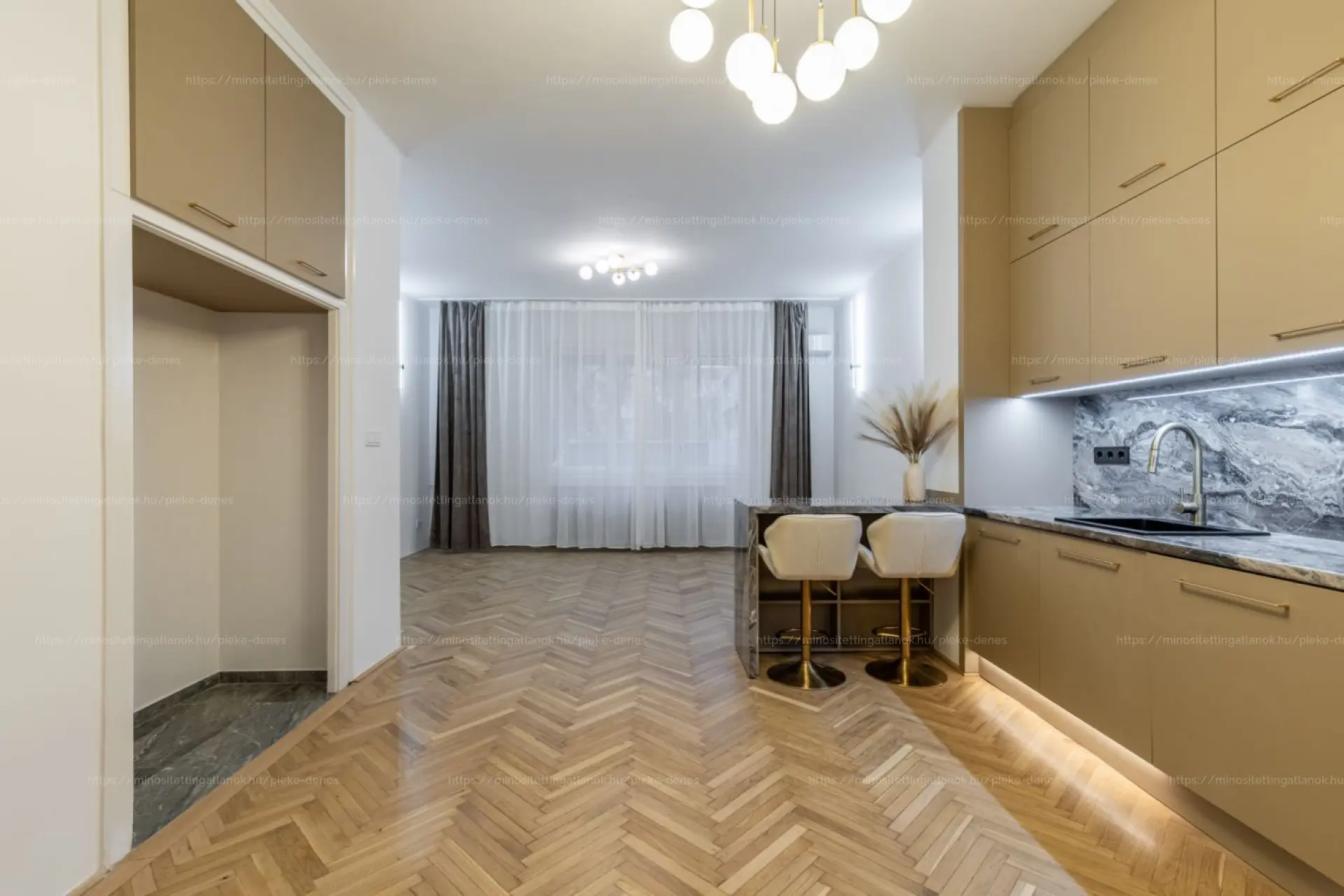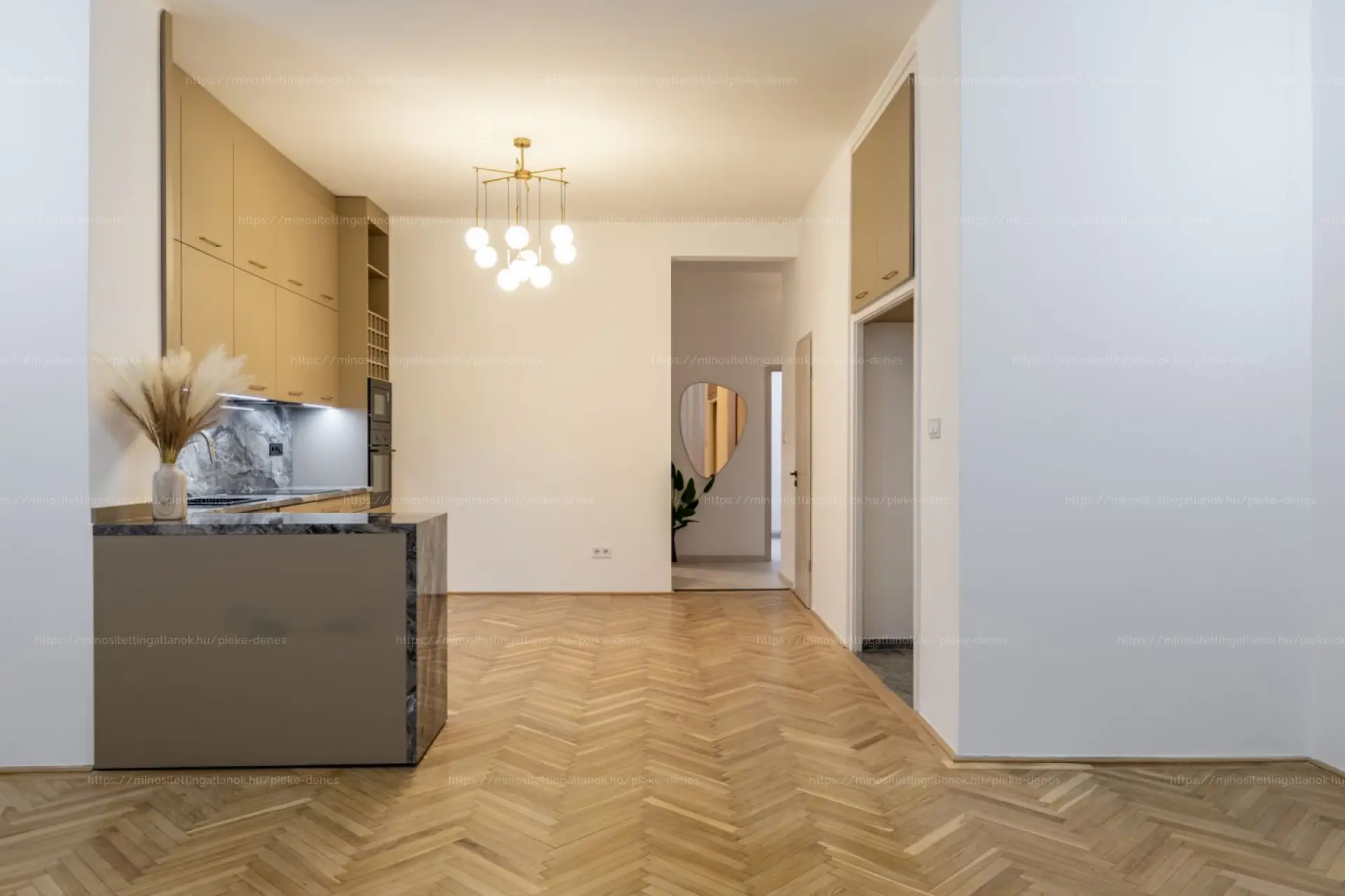 Jó állapotú ház félemeletén - 5 szintes, zártlépcsőházas, liftes, bekamerázott épületben. A teljes körű, prémium minőségű felújítás során a 70 m² lakás megújult.