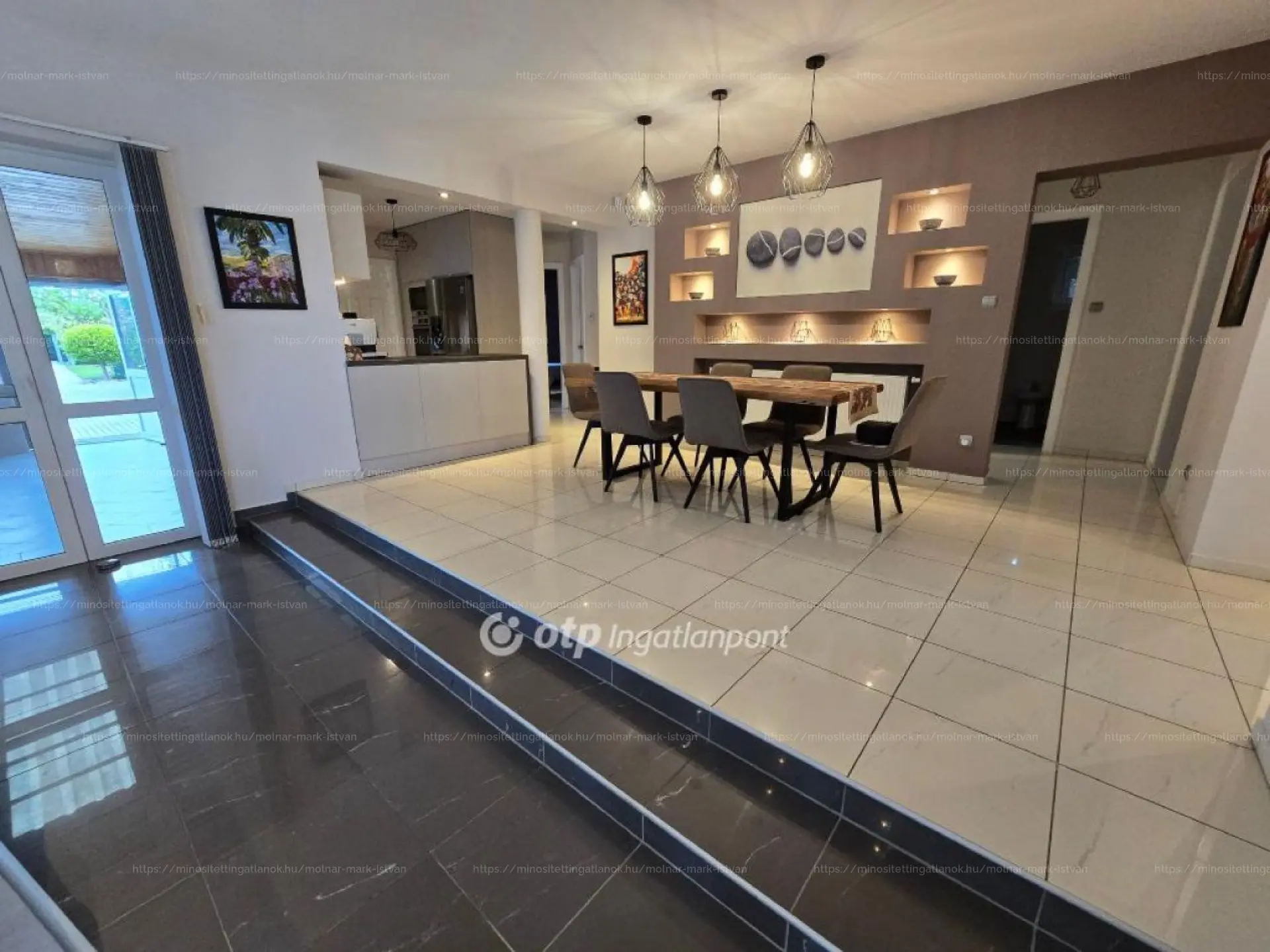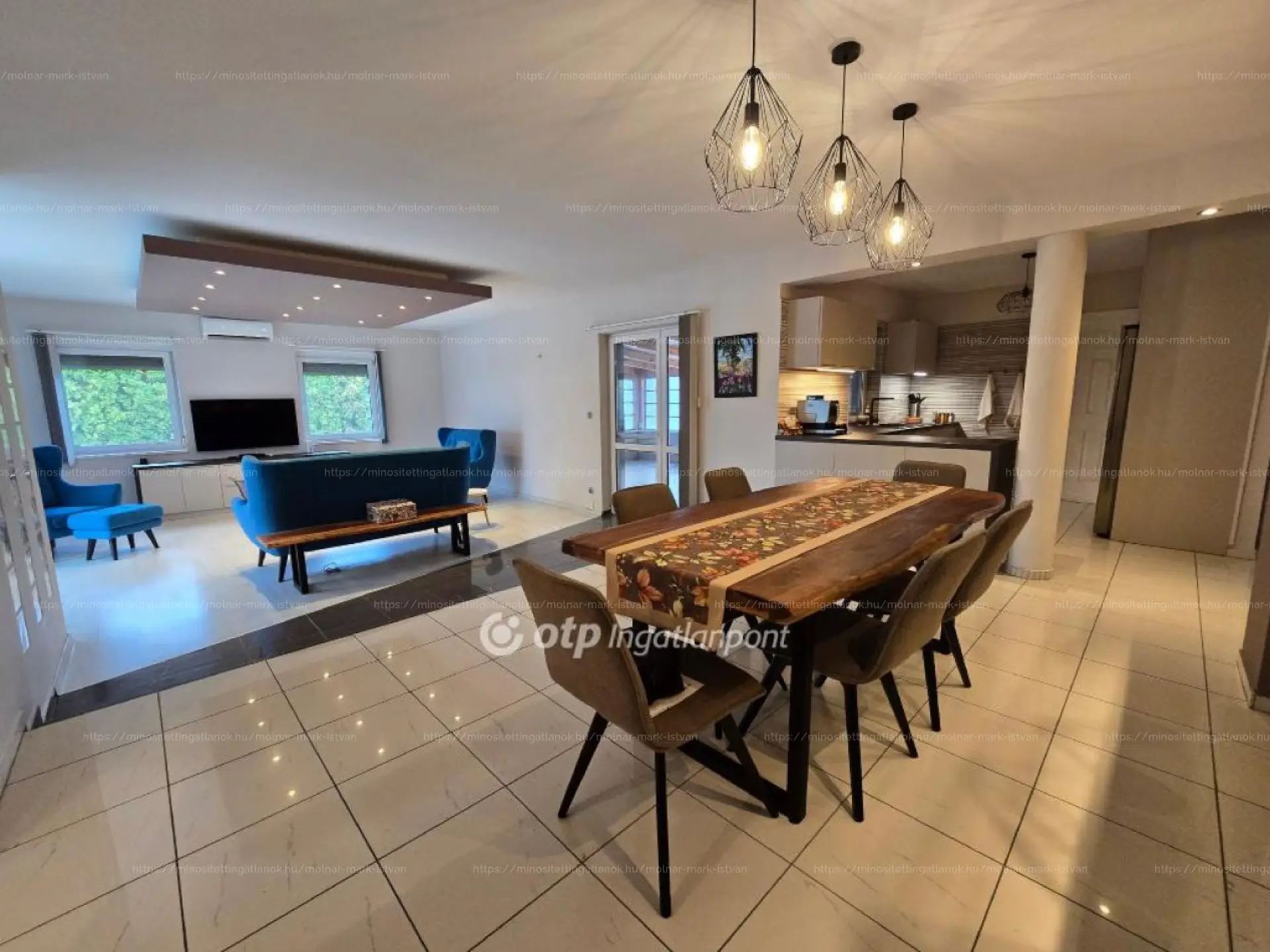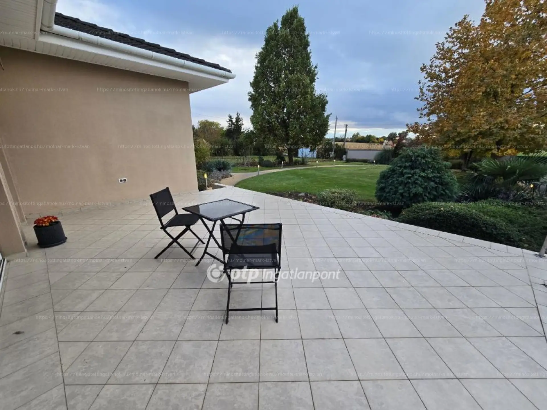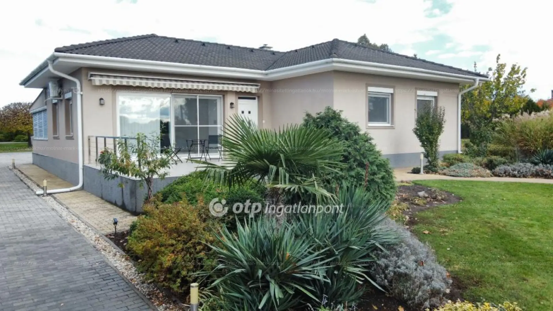 A tulajdonosok folyamatosan gondoskodtak az épület karbantartásáról és megújításáról: legutóbb a konyha és a fürdőszobák kaptak teljes felújítást, új burkolatokkal, korszerű gépészettel és modern megjelenéssel. A hőszigetelt, műanyag nyílászárók redőnnyel és szúnyoghálóval ellátottak. A fűtésről egy 25 kW-os vegyestüzelésű kazán gondoskodik 1000 literes puffertartállyal, padlófűtéssel és radiátoros hőleadással. A rendszer előkészített hőszivattyús fűtésre is, így a ház energiahatékonysága jövőbiztos. A 2449 m2-es telek a ház igazi ékköve, mérnöki precizitással megtervezett és szeretettel gondozott kert, ahol a dísznövények és egzotikus fák különleges harmóniát teremtenek. Az előkertben árnyas fák és ligetes rész fogadja a látogatót, míg a ház mögött mediterrán hangulatú udvar tárul fel pálmafával, banánfákkal, barack-, cseresznye-, körte- és fügefákkal, valamint citromfűvel, mentával, zsályával, eperrel és datolyával. A növényzet öntözését fúrt kútról működő, 7 zónás automata öntözőrendszer biztosítja. A kert hátsó részében grillező sarok, magaságyások, komposztáló, 300 literes esővízgyűjtő, kutyakenel és egy 12 m2-es medence is található - ideális helyszín pihenéshez, kertészkedéshez vagy családi programokhoz. A kényelmet tovább növeli a központi porszívó rendszer, elektromos napernyő, inverteres klíma, elektromos kapu és riasztórendszer.