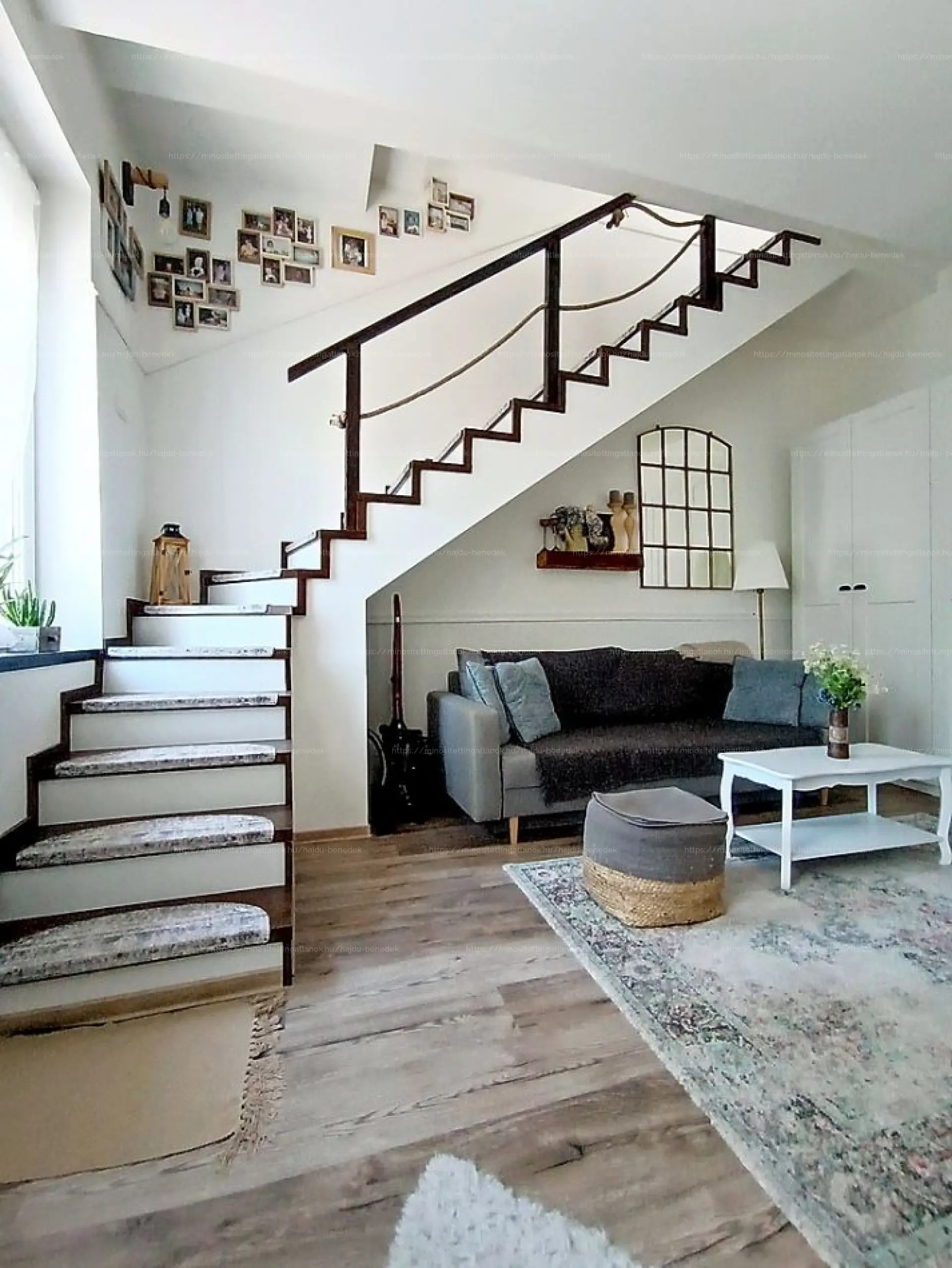 - Alsó szint (34 nm): nappali, konyha, fürdőszoba, külön WC