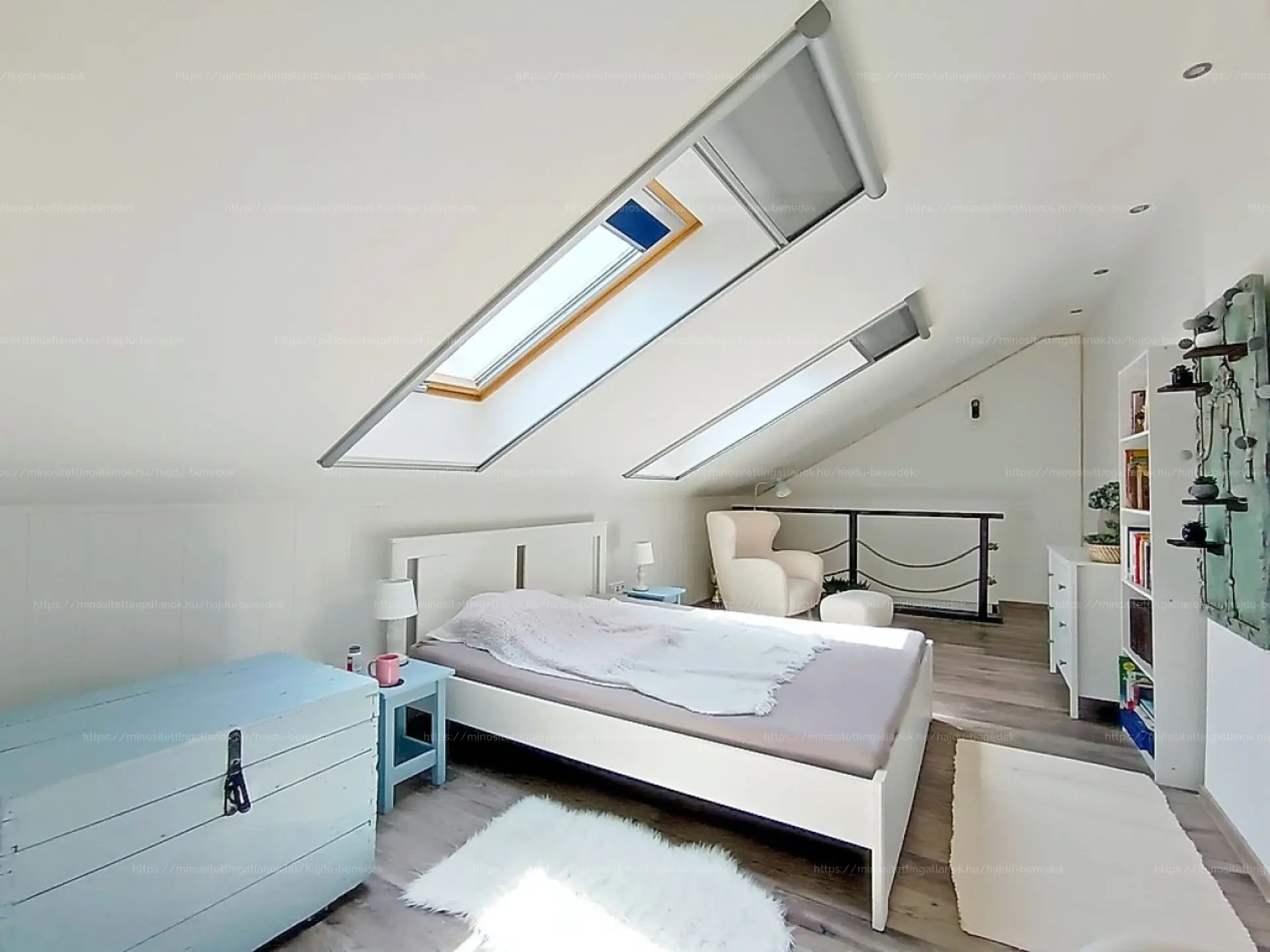 - Felső szint: hálószoba és dolgozósarok (nettó 21 nm, bruttó 26 nm)