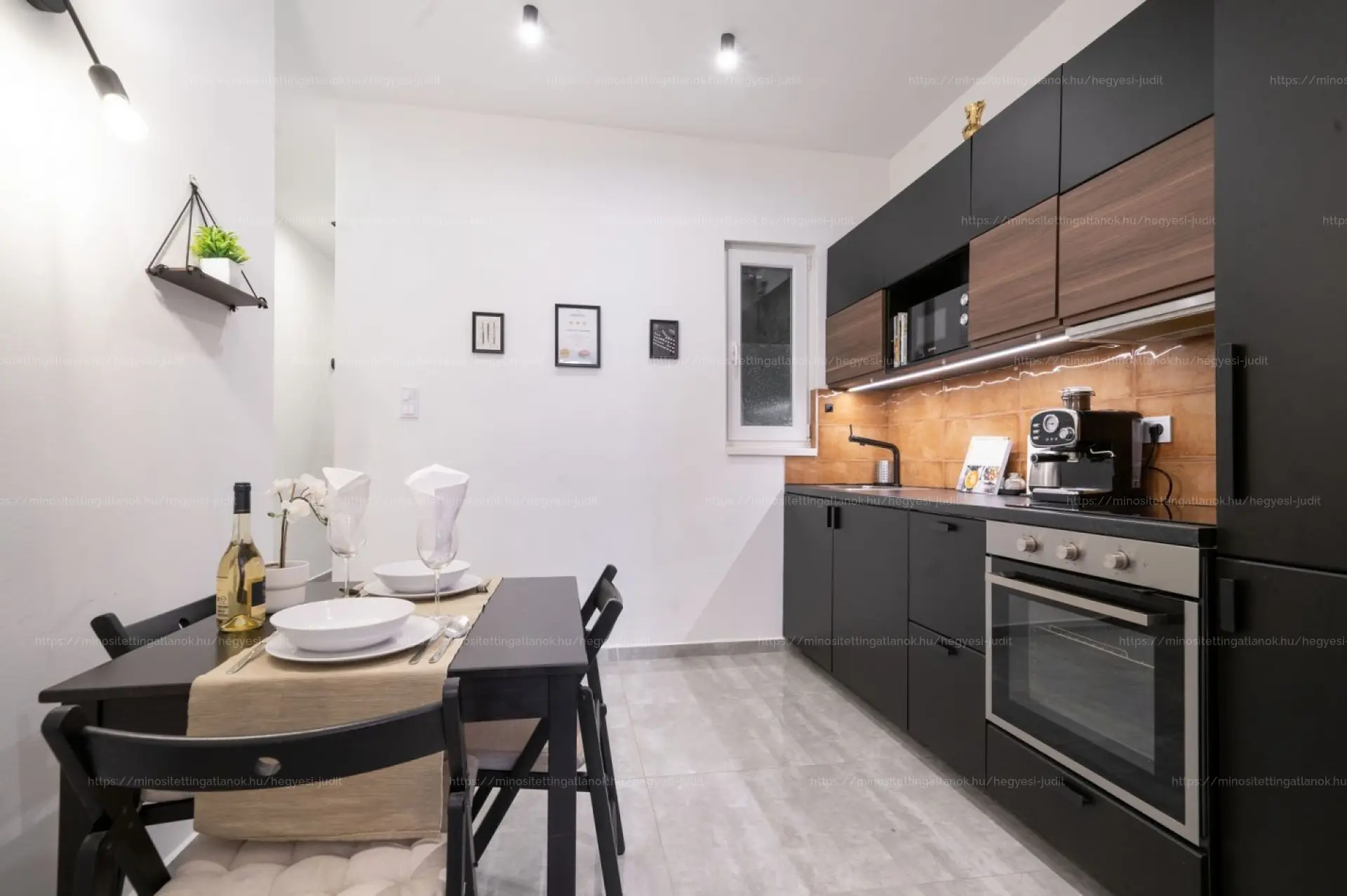 Modern, belsőépítész által tervezett terek, gépesített konyhák, design fürdők, NOBO fűtőpanelek és klímák jellemzik.