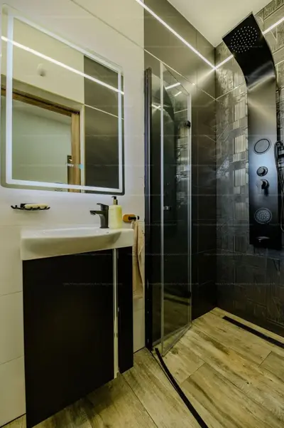 8 főre tervezett finn szauna különleges belső fényekkel