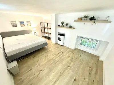 The windows face the inner courtyard, making it very QUIET! FULLY EQUIPPED and FURNISHED! Layout includes a LIVING ROOM, KITCHEN, BEDROOM, STUDYROOM and a BATHROOM.