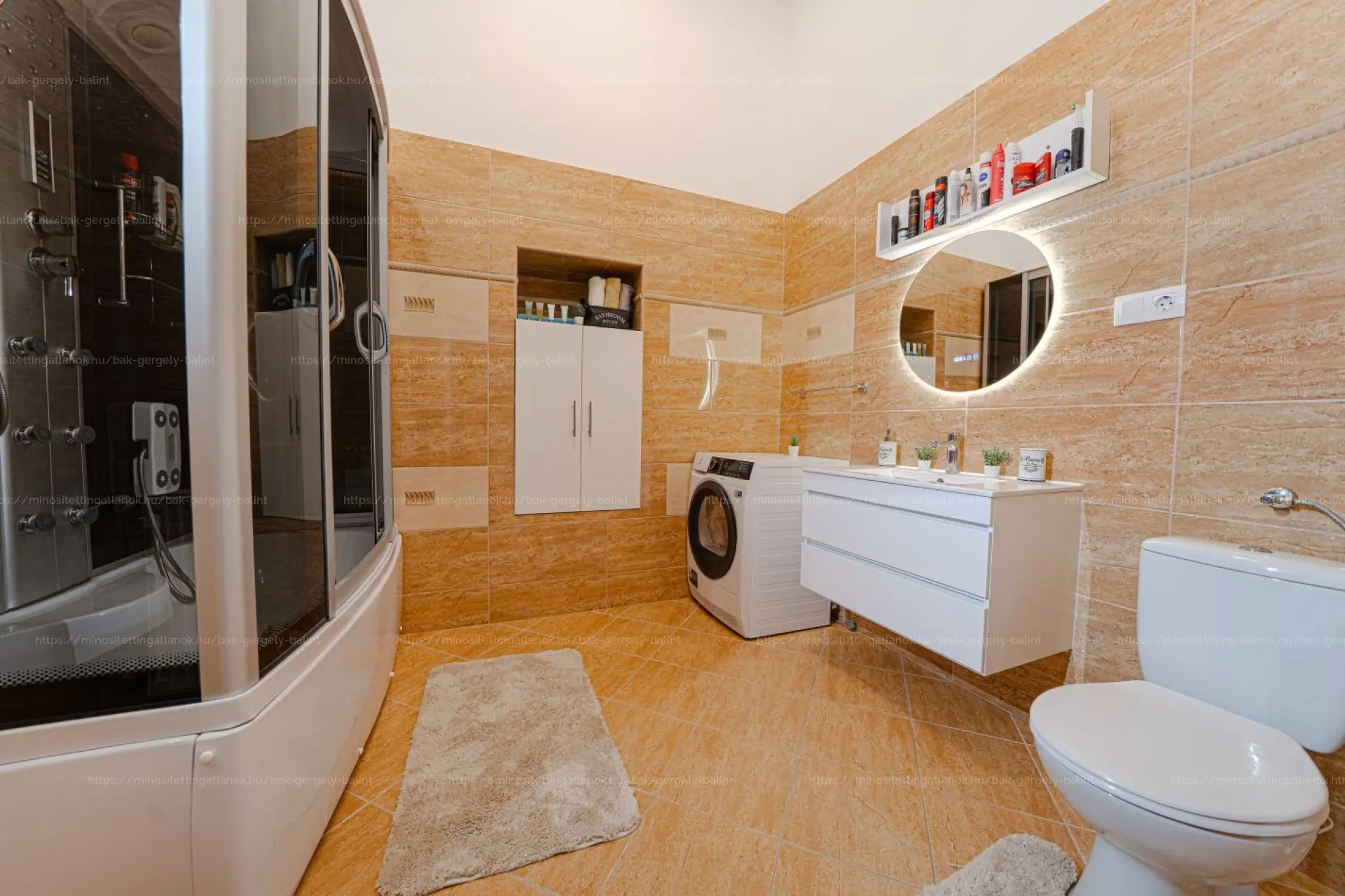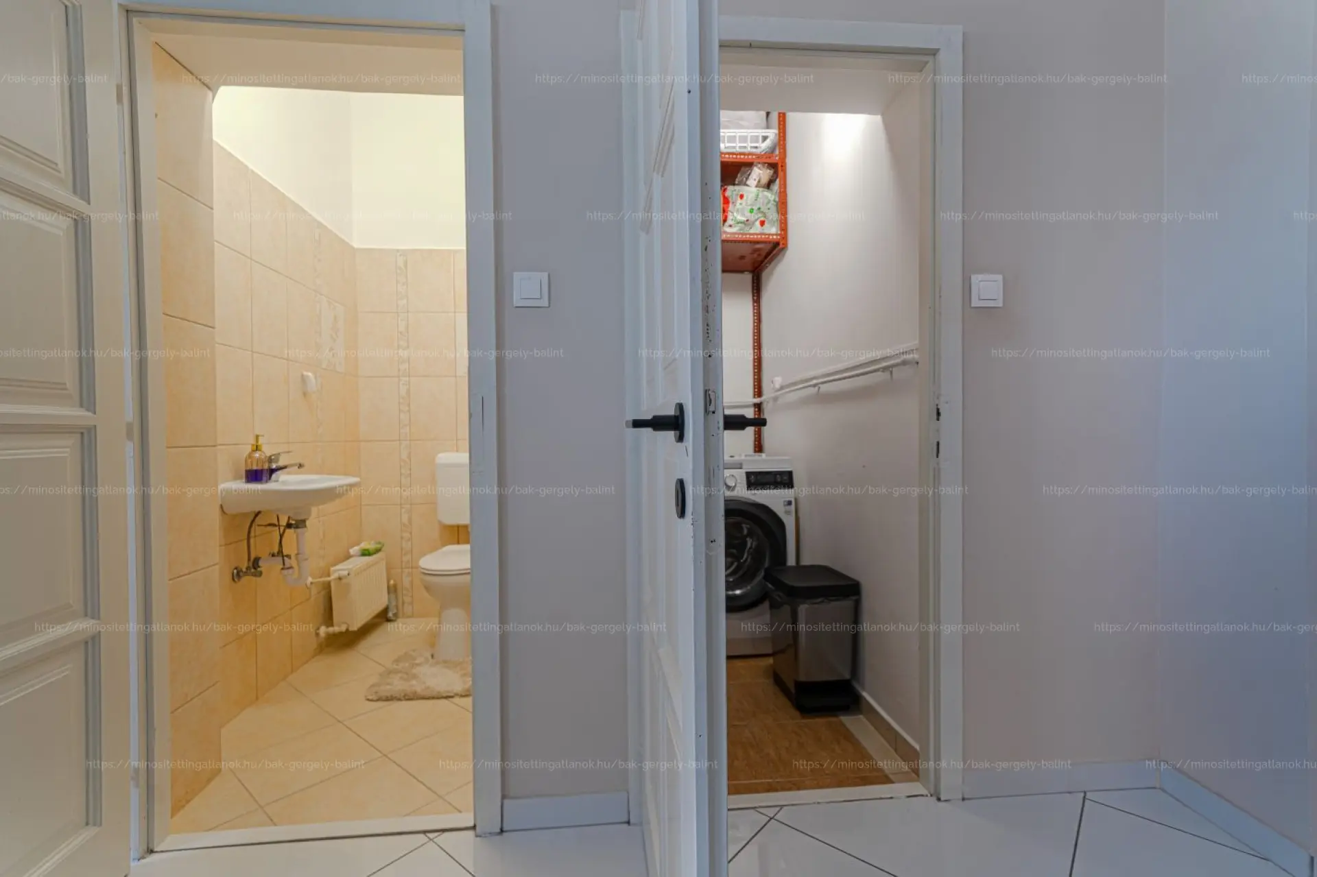 tágas fürdőszoba WC-vel, külön mosókonyha / kamra.