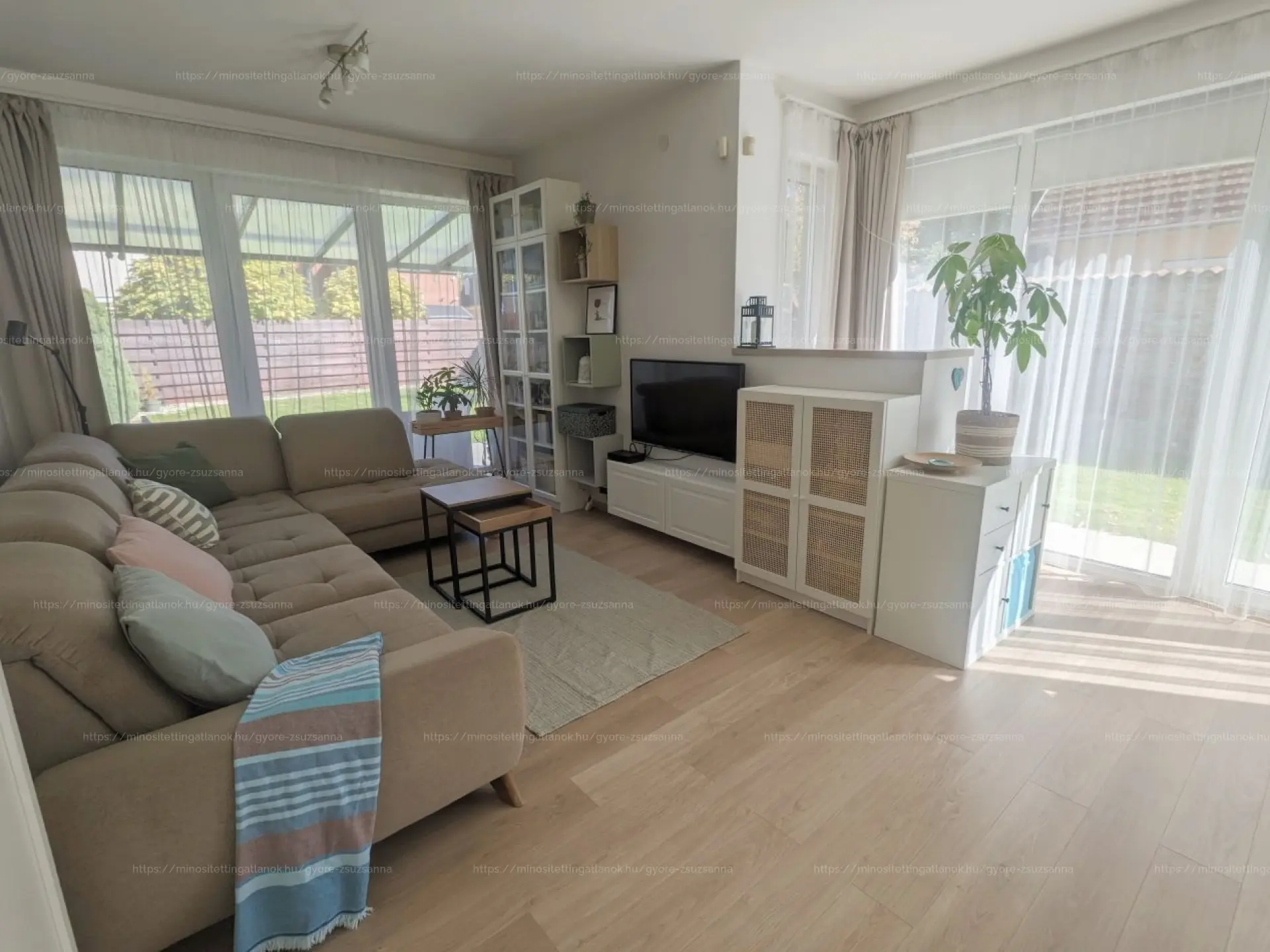 A két szintes, kb. 120 m²-es otthon kiváló elosztású: tágas amerikai konyhás nappali, összesen 3 +2 félszobás, 2 fürdő, gardrób, két terasz, valamint egy kizárólagos használatú, parkosított kert tartozik hozzá. Az ingatlan jogi jellege: társasház!