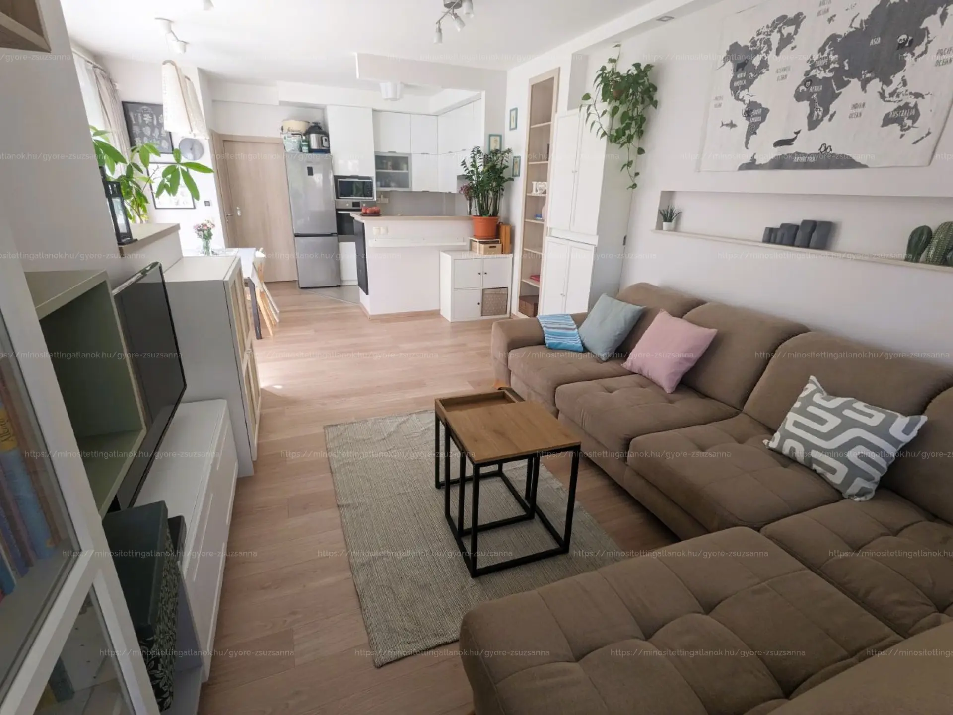 • napfényes, 34 m²-es amerikai konyhás nappali nagy üvegfelületekkel