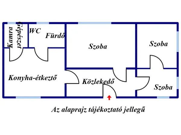 Kiváló elosztású ingatlan: előtér, 2,5 szoba, konyha-étkező, fürdő-WC, kamra ( a gépészettel), az udvaron tároló,