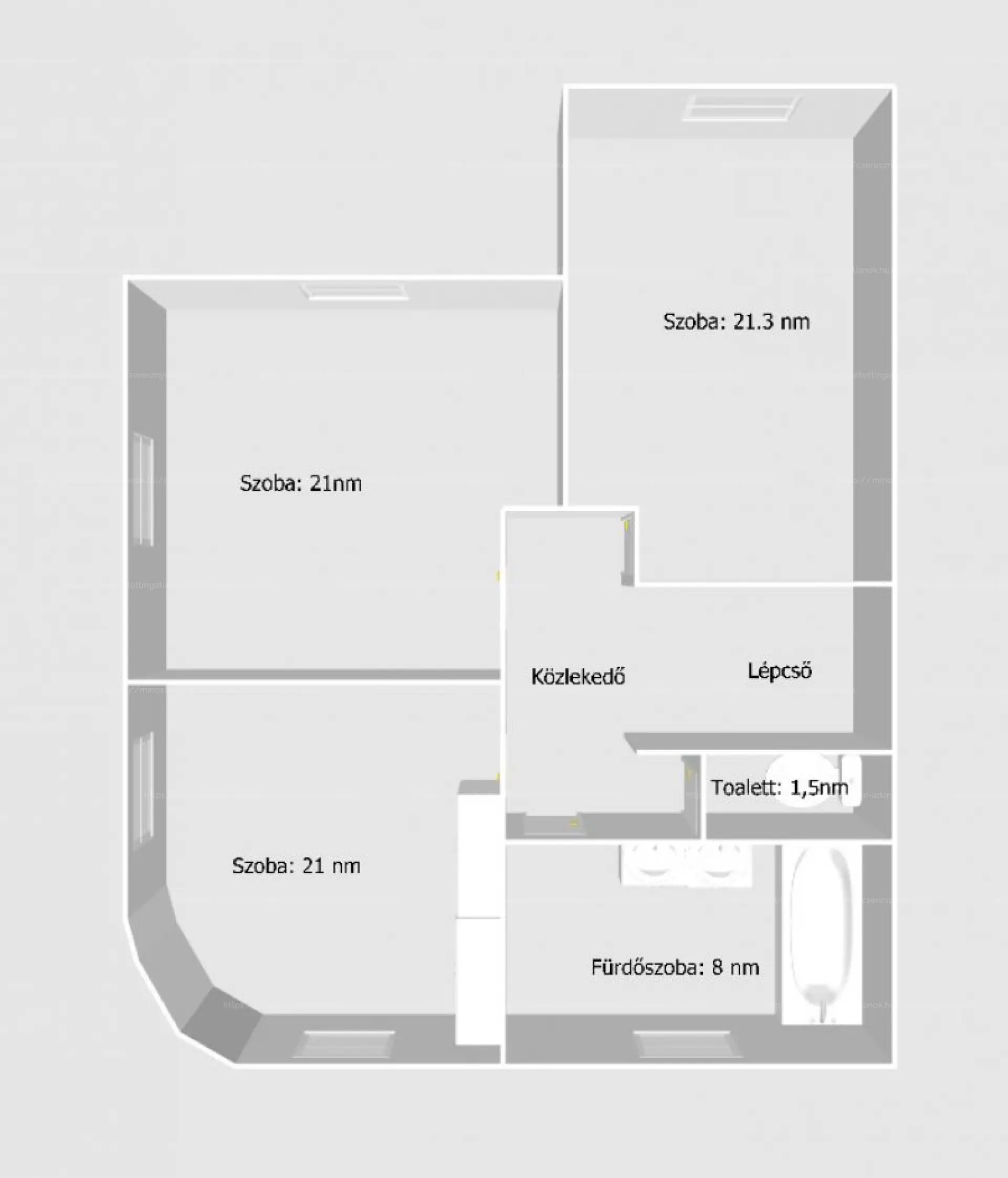 • Ideális elosztás: 5 szoba (nappali + 4 hálószoba), 2 fürdőszoba, amerikai konyha gépesítve.