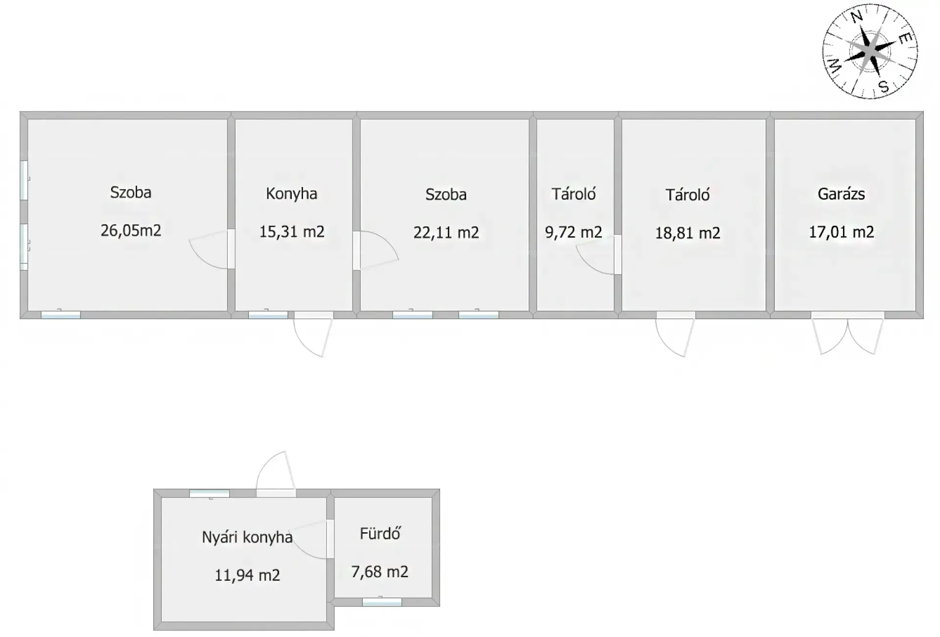 Különálló épületben található egy jó állapotú konyha és egy tágas, WC-vel ellátott fürdőszoba. Fontos kiemelni, hogy mindkét épület tetőszerkezete kitűnő állapotban van, így hosszú távon gondtalan otthont biztosít. Amennyiben az új tulajdonos igényli, a konyha és a fürdőszoba a főépületben is kialakítható, rugalmas megoldásokat kínálva.