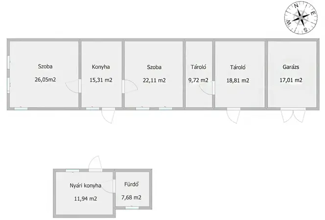 Különálló épületben található egy jó állapotú konyha és egy tágas, WC-vel ellátott fürdőszoba. Fontos kiemelni, hogy mindkét épület tetőszerkezete kitűnő állapotban van, így hosszú távon gondtalan otthont biztosít. Amennyiben az új tulajdonos igényli, a konyha és a fürdőszoba a főépületben is kialakítható, rugalmas megoldásokat kínálva.