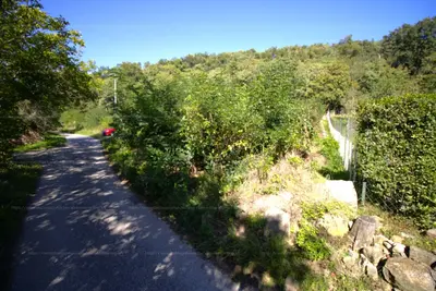 A telek végső, szélső telek, felső részén már az erdő határolja, az alsó részén szomszédságban épület, és az aszfaltos Kiserdő utca határolja.