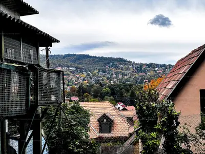 Az ingatlan előnye, hogy Panorámás hegyoldalban helyezkedik el, közvetlen erdő melletti csendes, nyugodt átmenő forgalomtól mentes utcában.