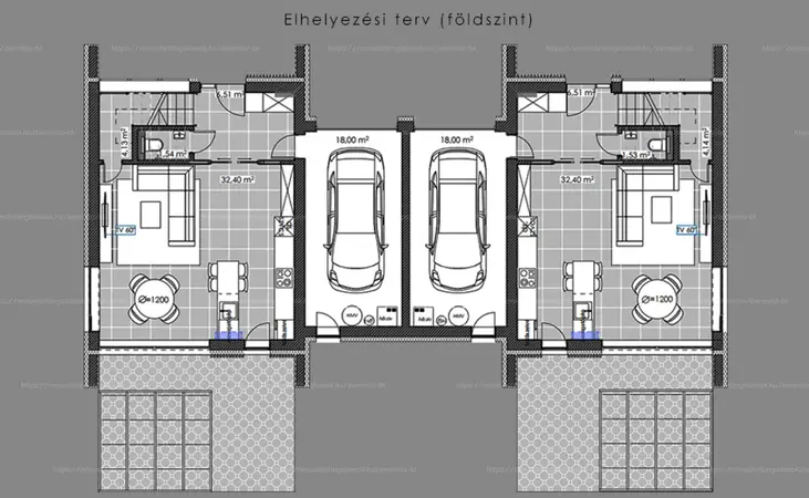 - Saját, 539,5 nm-es telekrész, automata öntözőrendszerrel és parkos kerttel