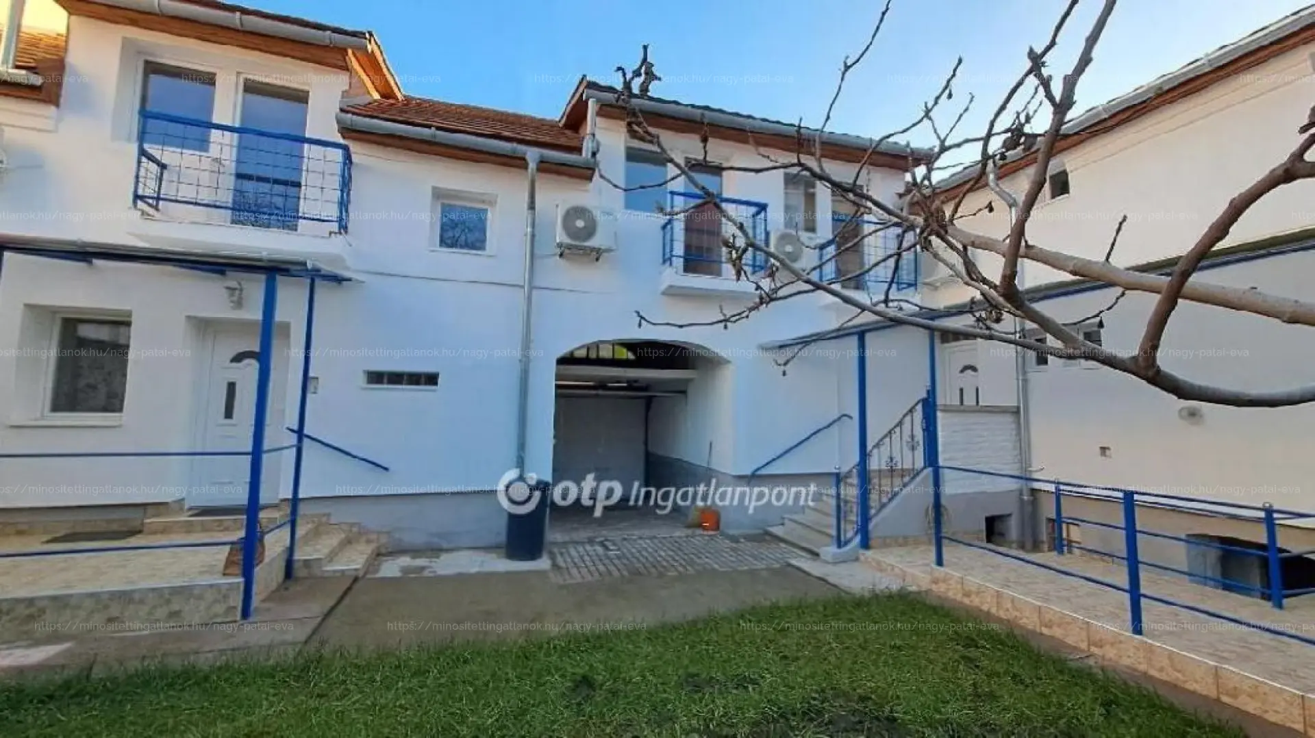 Az épület két szintes, két külön szárnnyal és independens bejárattal. A két házrészben összesen 7 szoba + nappali–étkező–konyha található. Az egyik házrész alatt 45 négyzetméteres pince kapott helyet, ahol az eredeti, kb. 80 cm vastag téglafalak látszanak – BOROSPINCÉNEK is MŰKÖDŐKÉPES. A házhoz 3x1 négyzetméteres erkély, kettő terasz (11 m² és 8,4 m²), valamint 11 m²-es autóbeálló tartozik. A közös, zárt kerttel rendelkező telek területe 207 m². A közös főbejárat ELEKTROMOS GARÁZSKAPUVAL nyílik, a jobb és bal szárnyak egymástól jól szeparáltak, mindkettőhöz saját terasz kapcsolódik.