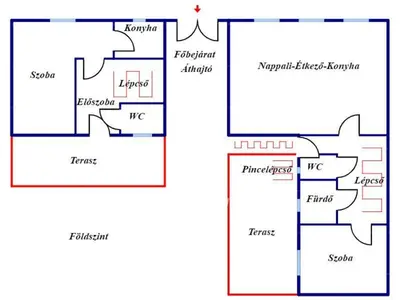 Az épület két szintes, két külön szárnnyal és independens bejárattal. A két házrészben összesen 7 szoba + nappali–étkező–konyha található. Az egyik házrész alatt 45 négyzetméteres pince kapott helyet, ahol az eredeti, kb. 80 cm vastag téglafalak látszanak – BOROSPINCÉNEK is MŰKÖDŐKÉPES. A házhoz 3x1 négyzetméteres erkély, kettő terasz (11 m² és 8,4 m²), valamint 11 m²-es autóbeálló tartozik. A közös, zárt kerttel rendelkező telek területe 207 m². A közös főbejárat ELEKTROMOS GARÁZSKAPUVAL nyílik, a jobb és bal szárnyak egymástól jól szeparáltak, mindkettőhöz saját terasz kapcsolódik.