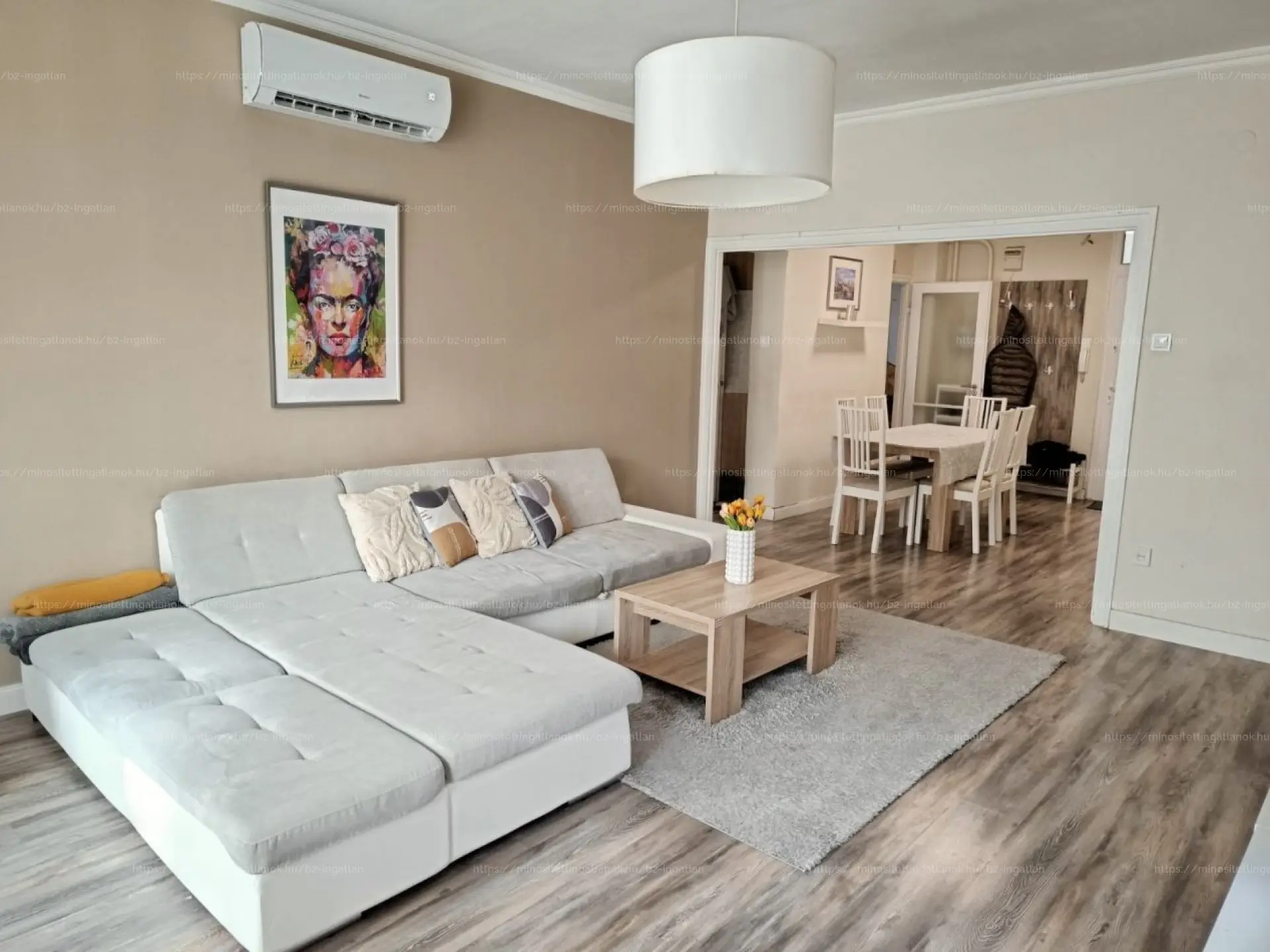 A lakás világos, jól tagolt és kifejezetten praktikus elrendezésű. Három különnyíló szoba mellett nagyméretű nappali, elkülönített konyha, étkező, spájz, gardrób és kiszolgáló helyiségek szolgálják a kényelmet. A hőszigetelt üvegezésű nyílászárók redőnnyel és szúnyoghálóval el vannak látva, a fedett teraszon pedig kipattantható árnyékoló gondoskodik a kellemes használatról. Fűtés gázkonvektorral megoldott, a nappaliban erős hűtő fűtő klíma nyújtja a komfortot. A árból része a konyhabútor, a gardrób, illetve a beépített mosogatógép.