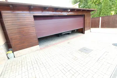 A ház téglából épült 837 m2-es telekre. Az udvari oldalon kb. 15 m2-es fedett terasz készült a pihenéshez, baráti összejövetelek színhelyéül. A kert füvesített, díszfákkal, virágokkal díszített, elől térkövezett.