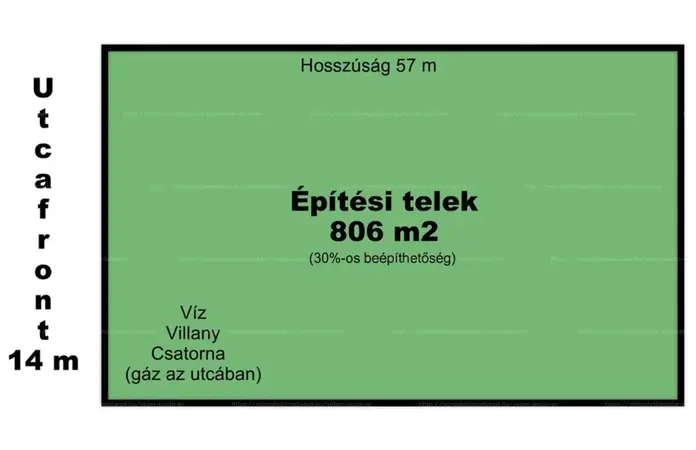 Az ingatlan egy tiszta, rendezett telek, amelynél nem szükséges bontási munka. A közművek közül villany, víz és csatorna a telken belül rendelkezésre áll, a gáz pedig az utcai hálózatban, közvetlenül a telek előtt található. A 30%-os beépíthetőség és a 806 m2-es telekméret egyértelmű műszaki paramétereket ad a tervezéshez.