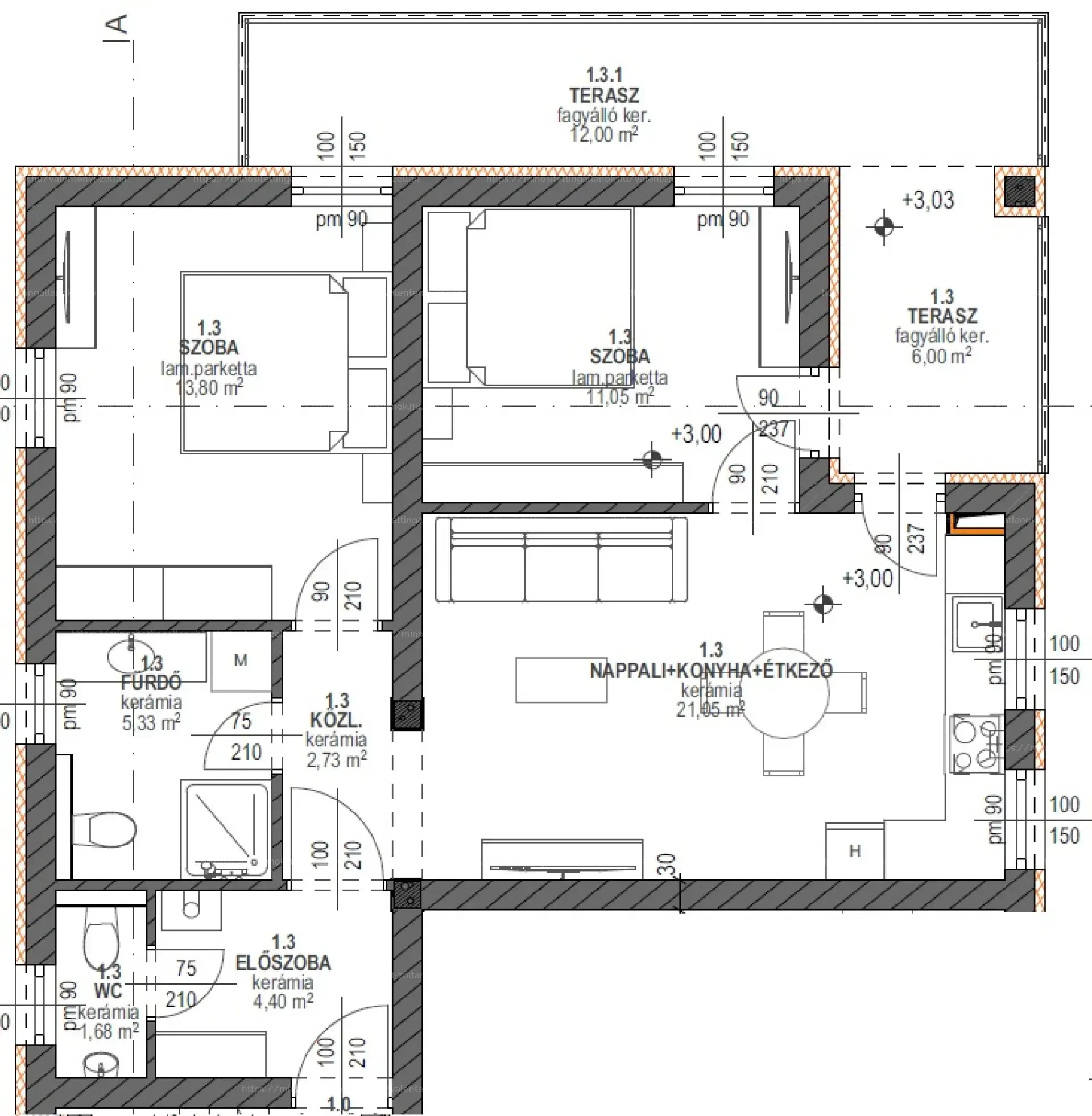A lakás egyik kiemelt előnye a nagy, részben fedett, 18 m²-es terasz, amely ideális: