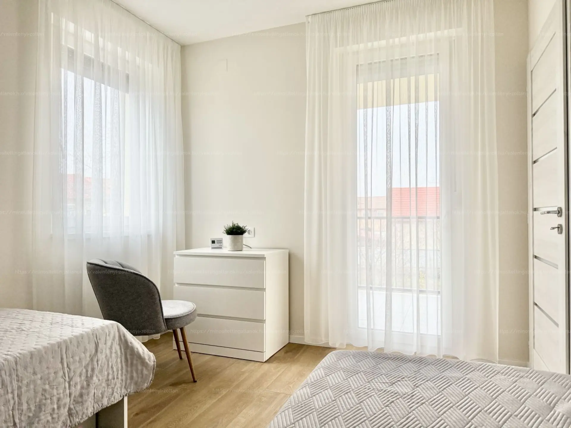 Debrecen nyugati városrészében, a Kishegyesi út frekventált, mégis csendes részén kiadó ez a 61 m²-es, új építésű, első emeleti, két hálószobás, prémium minőségű lakás, amelyhez 18 m²-es tágas terasz tartozik.