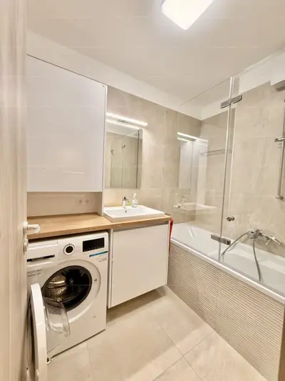 Apartment is for rent in a NEWLY BUILT ECO HOUSE in 8th district Budapest, Víg street. It’s a completely furnished and equipped 50 m2 flat with a comfortable 6,5 m2 balcony, very quiet and sunny in the afternoon, located on the 6th floor.