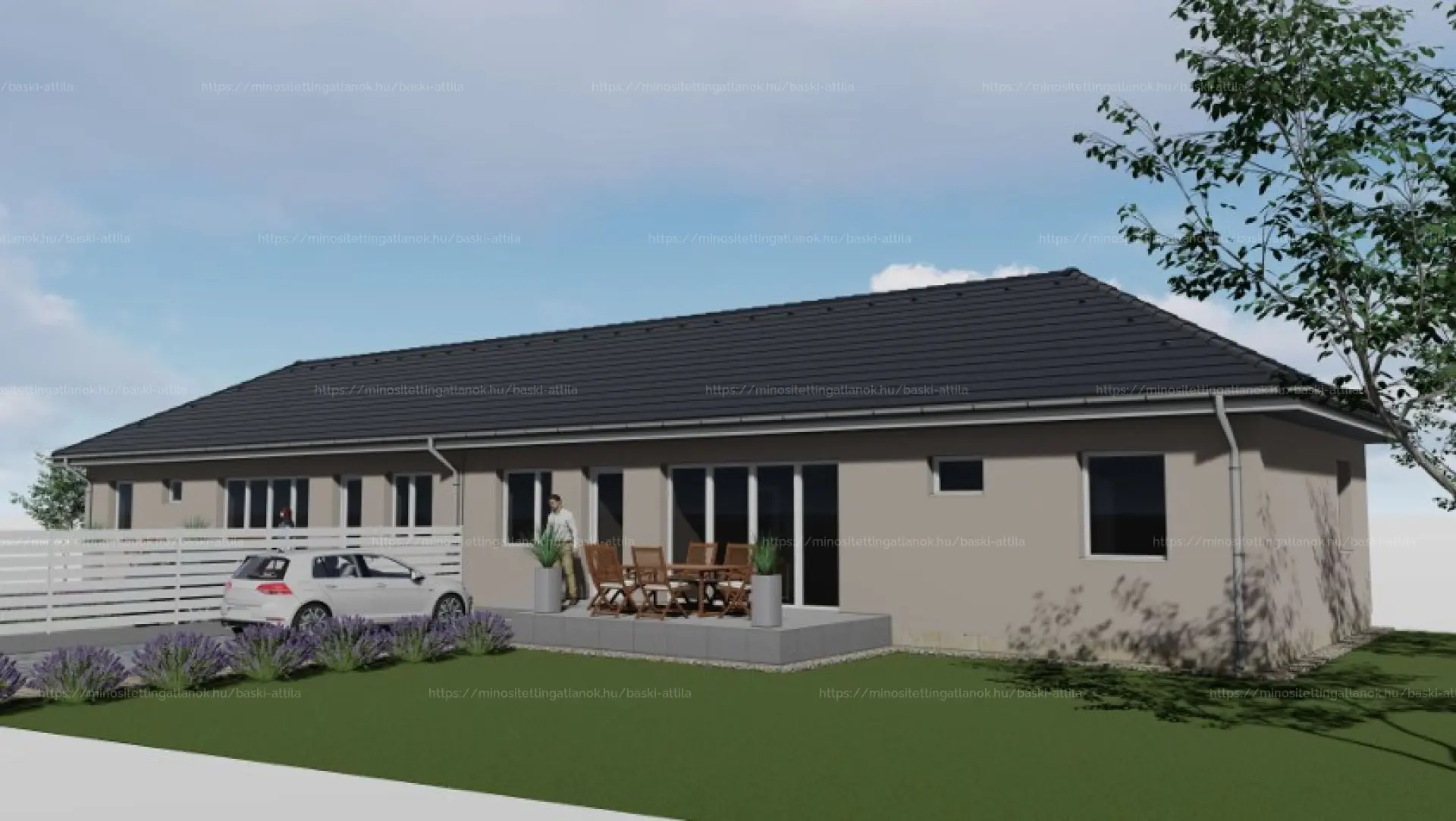 Eladó Kecskemét agglomerációban Helvécián nettó 92,3 nm lakóterű, amerikai konyhás nappali + 3 szobás, 18,6nm terasz, autóbeállóval rendelkező, PRÉMIUM műszaki tartalommal megépülő ÚJ ikerház projektet 340 nm-es telken.