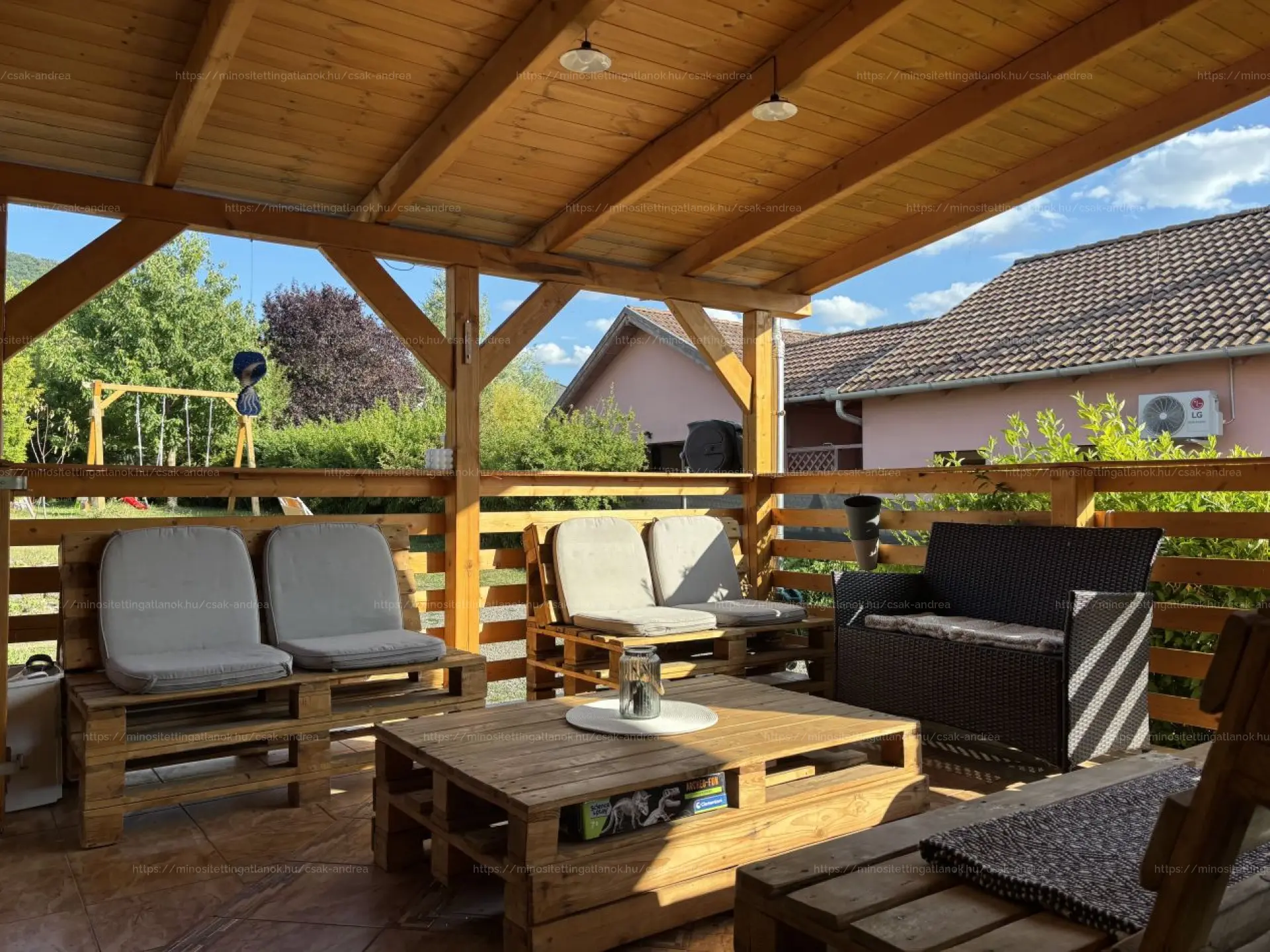 További extrák: GÉPESÍTETT KONYHA, ELEKTROMOS KAPU, 2 AUTÓ BEÁLLÓ /FA szerkezet/, SZERSZÁMOS HÁZIKÓ / fa szerkezet/, NYÁRSALÓ, KERTI CSAP.