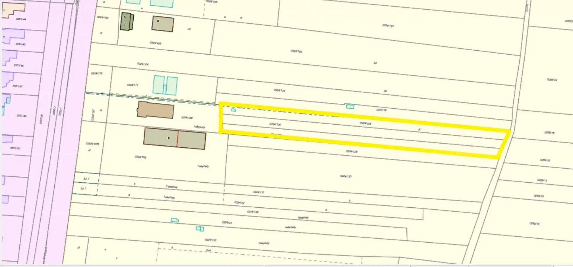 A legutóbbi városrendezési terv értelmében egy közepes méretű telephely két lakóingatlan telekkel