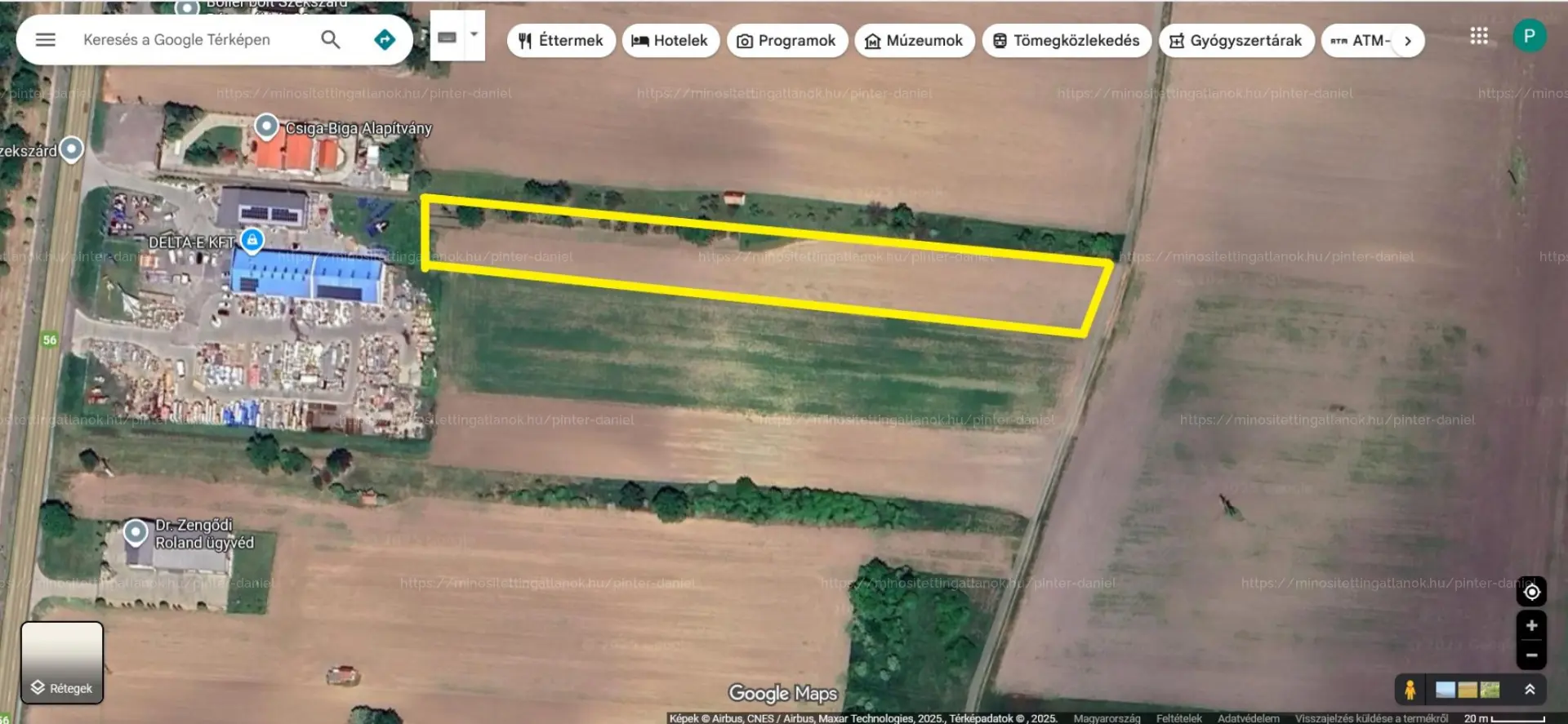 vagy akár négy lakóingatlan telek is kialakítható a területből. Megközelíthető az aszfalt burkolatú 56-os