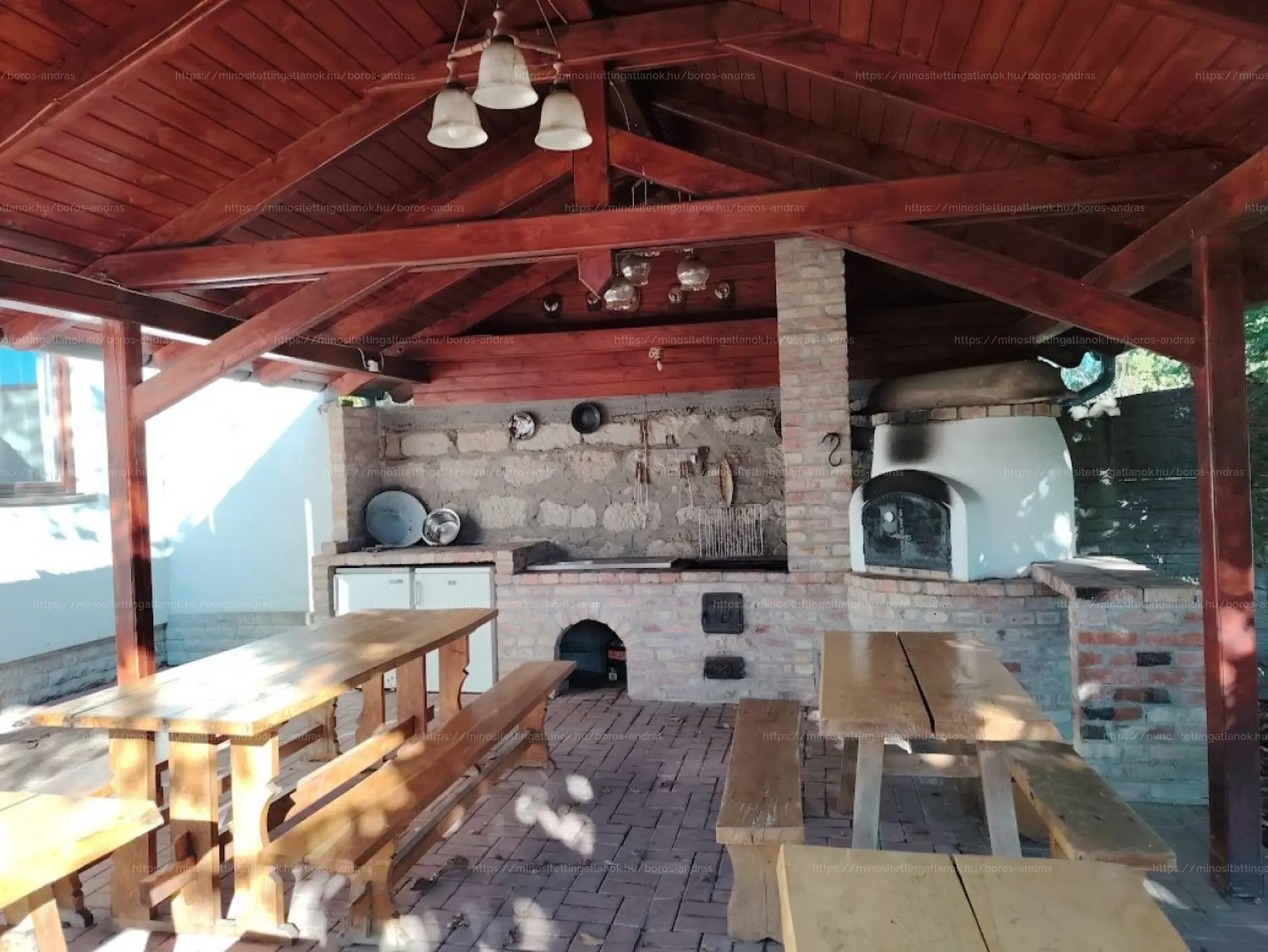 Das Grundstück ist komplett eingezäunt. Die Außenküche mit Ofen befindet sich im überdachten Gartenpavillon. Das Haus verfügt über einen Wellnessbereich mit finnischer Sauna, eingebautem Außenschwimmbad, holzbeheiztem Whirlpool für 10 Personen.
